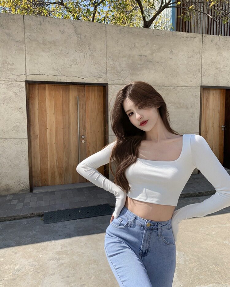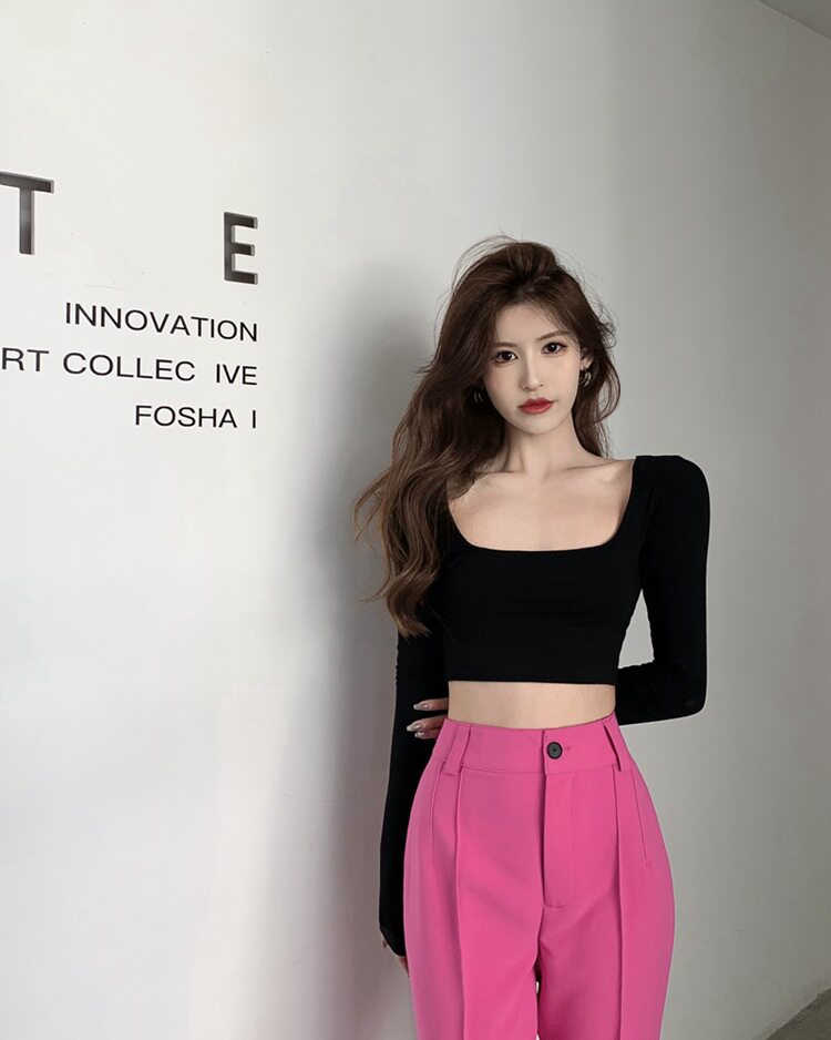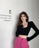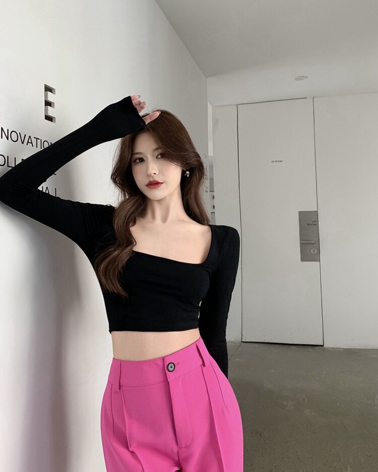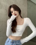 Сексуальная футболка, короткий базовый приятный телу лонгслив, осенняя, в обтяжку
