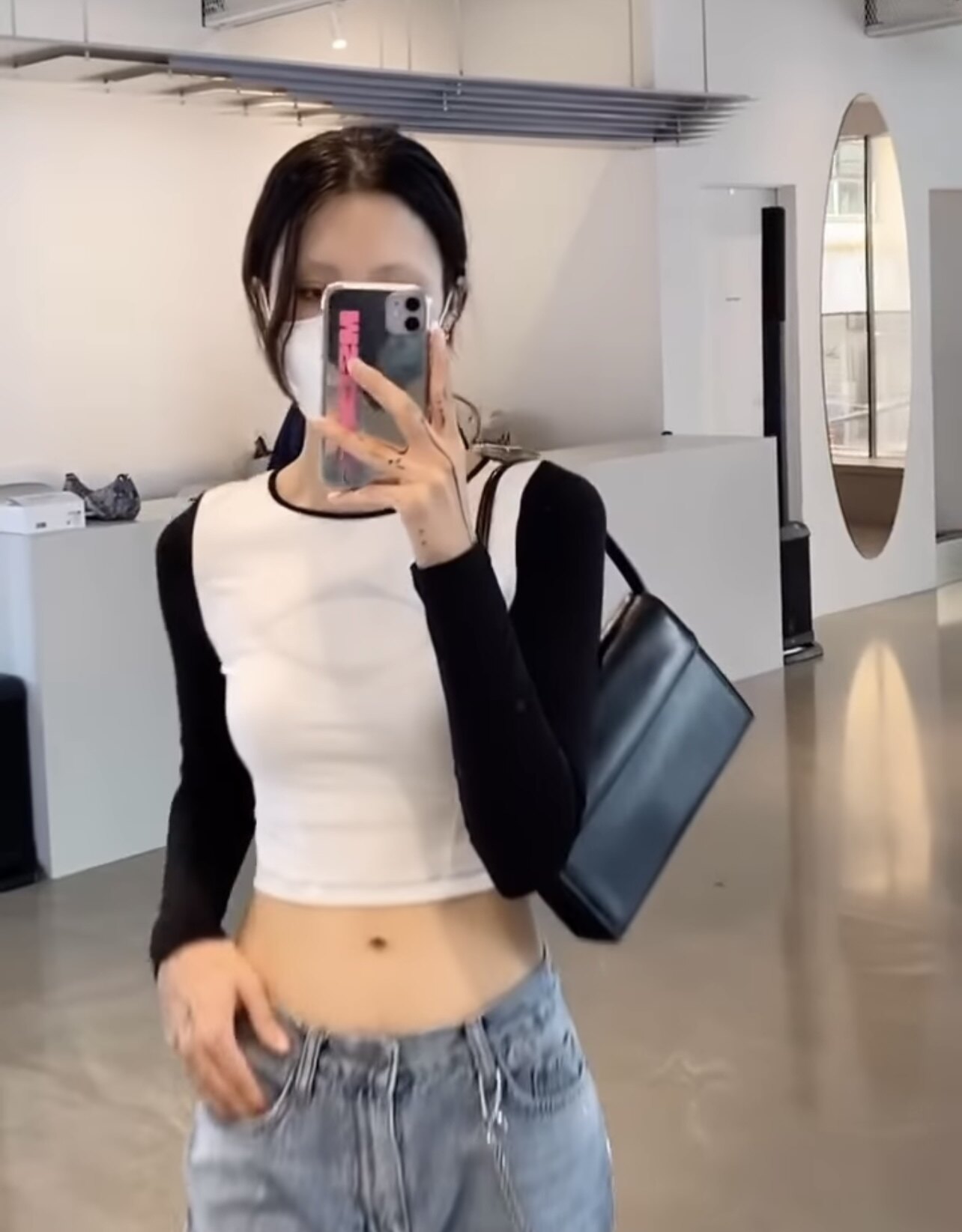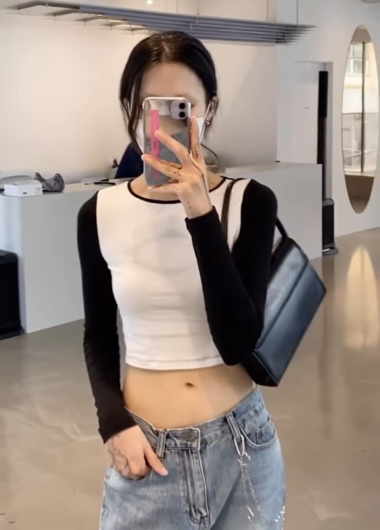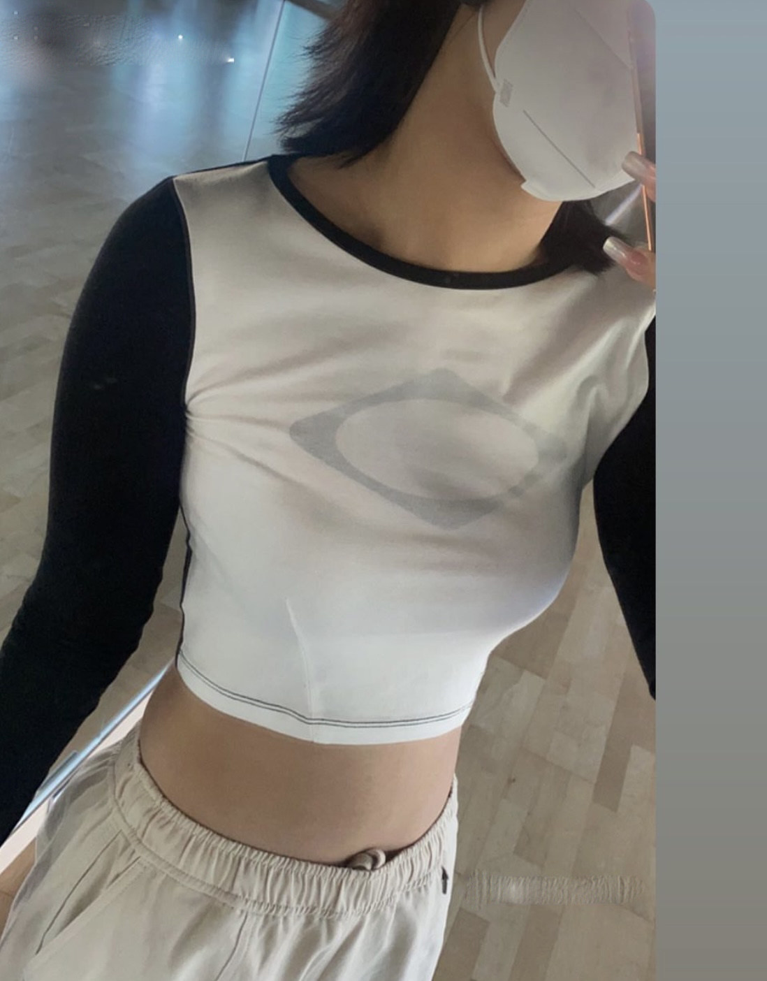 Уникальная корейская версия нишевой минималистской печать рукава на плечах стройной тонкости, тонкая, короткая t -мала