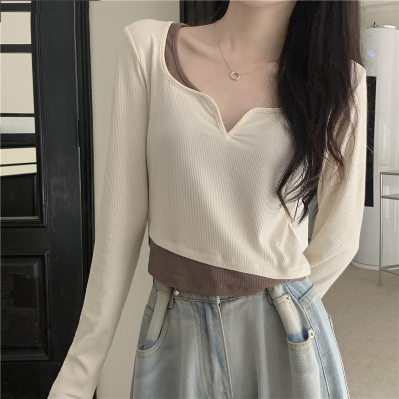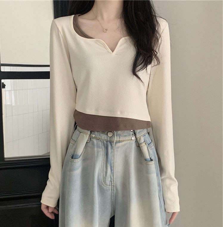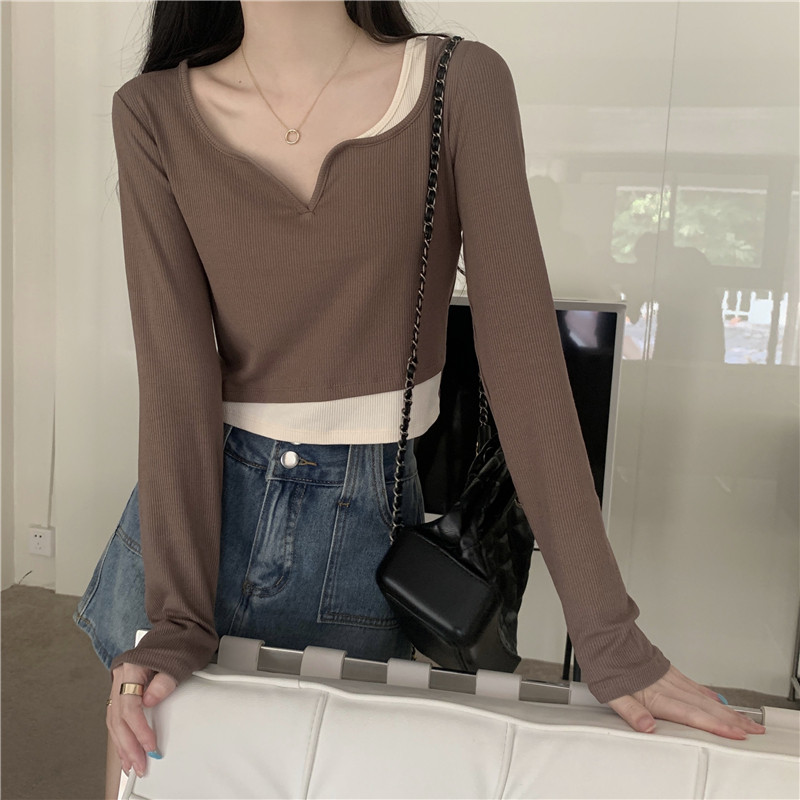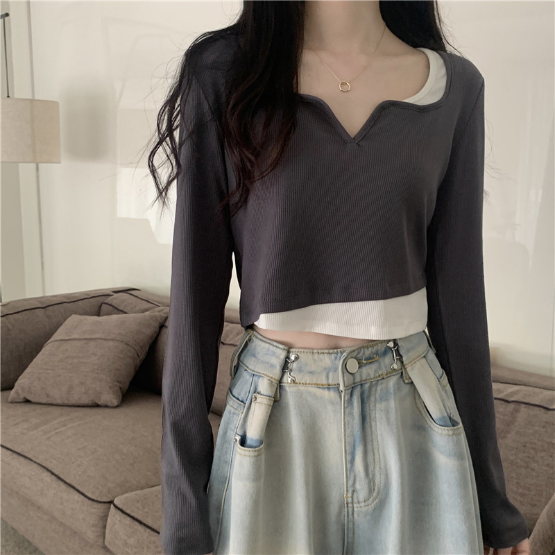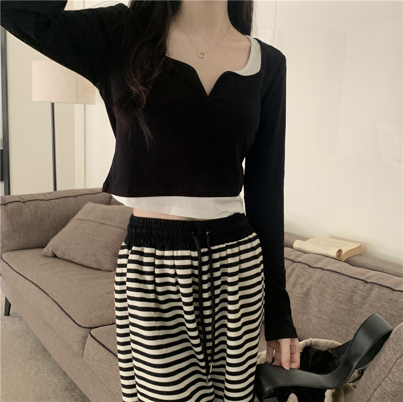 Комплект, осенний лонгслив в виде сердечка, базовый приятный телу короткий костюм, подходит для подростков