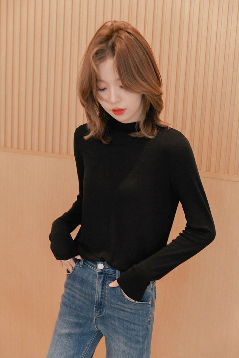 Черный цветной базовый приятный телу демисезонный трикотажный свитер, высокий воротник, подходит для подростков