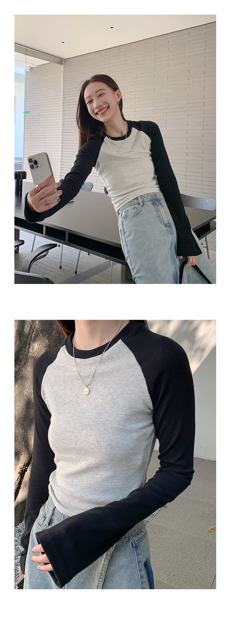 Осенняя футболка, эластичный приталенный лонгслив с круглым воротником, коллекция 2022