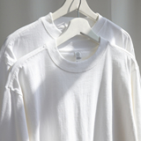 Хлопковый белый базовый приятный телу лонгслив для отдыха, оверсайз