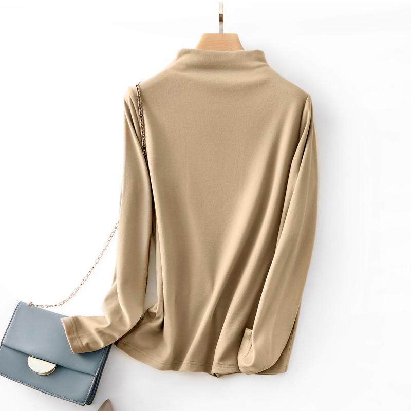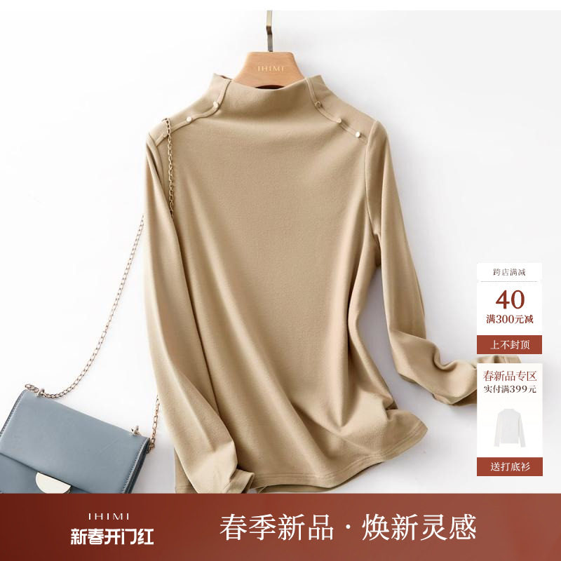 IHIMI Бархатный базовый приятный телу лонгслив, весенняя приталенная утепленная футболка, высокий воротник