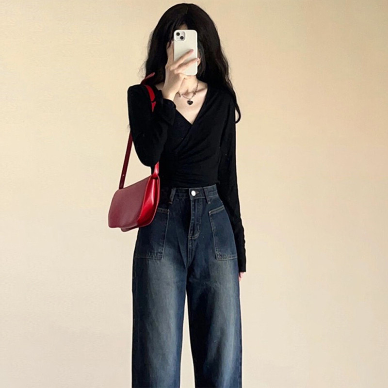 Черный базовый приятный телу приталенный пиджак классического кроя, короткий лонгслив, V-образный вырез