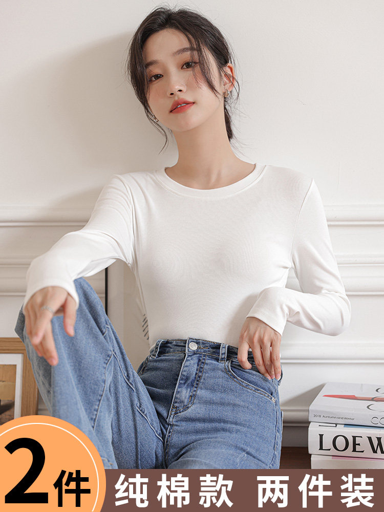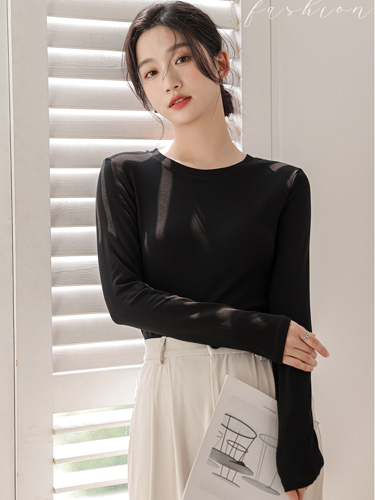 Базовый приятный телу хлопковый приталенный белый лонгслив с круглым воротником, высокий воротник, изысканный стиль
