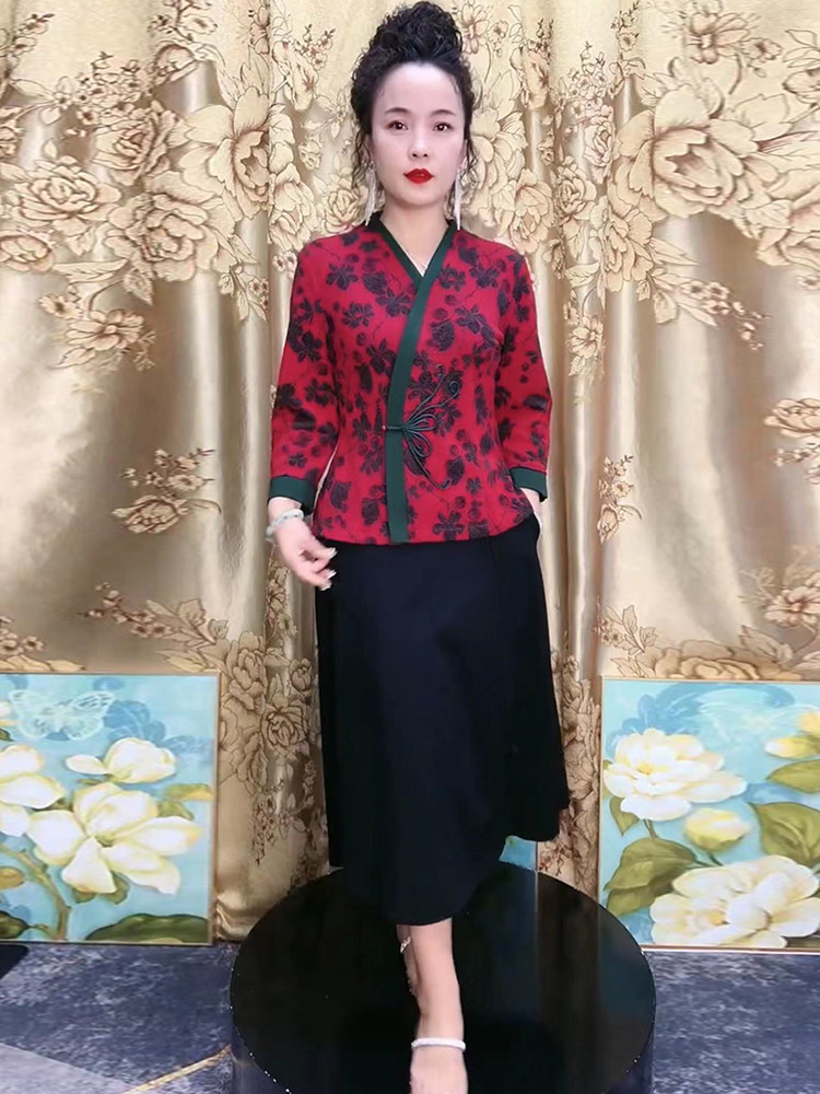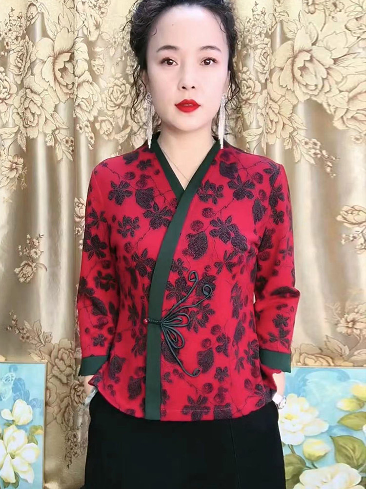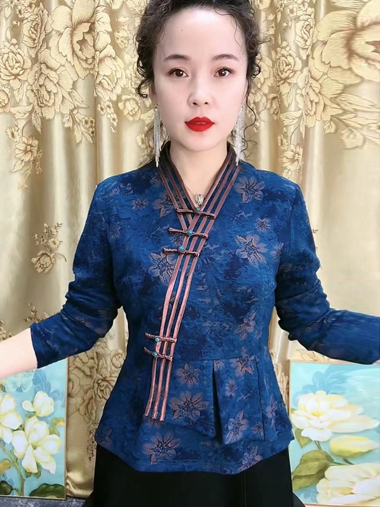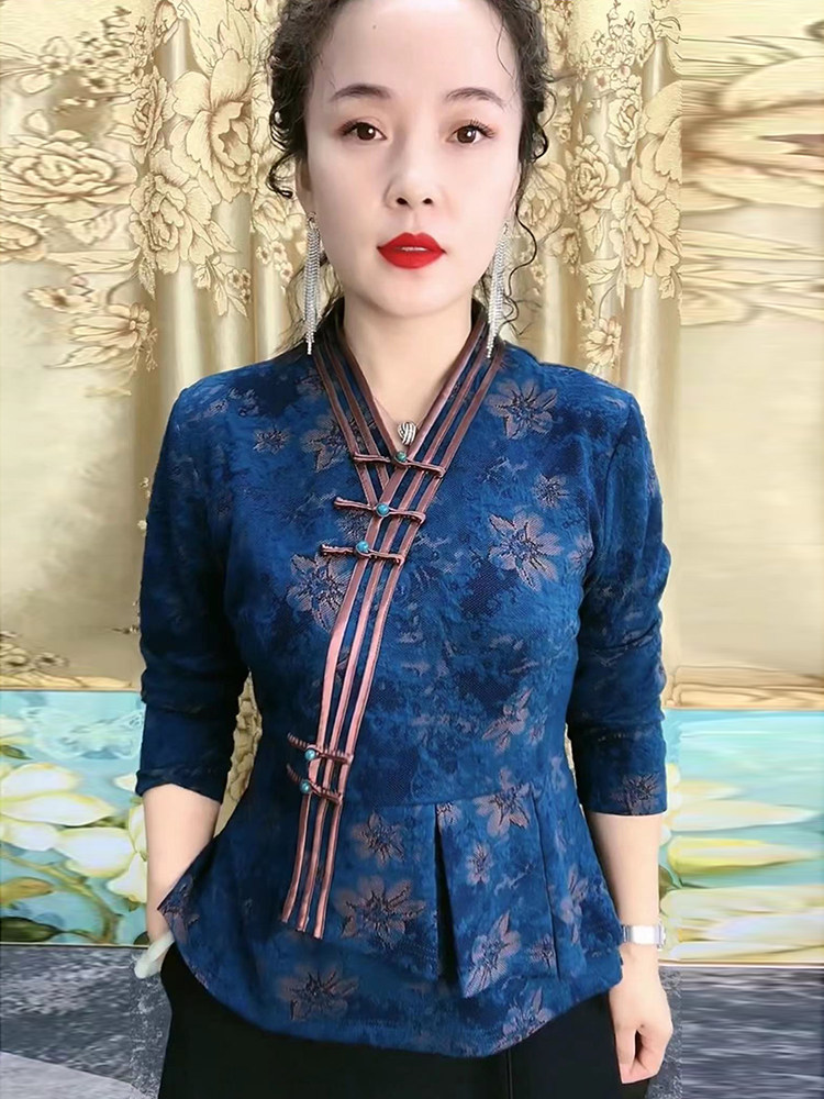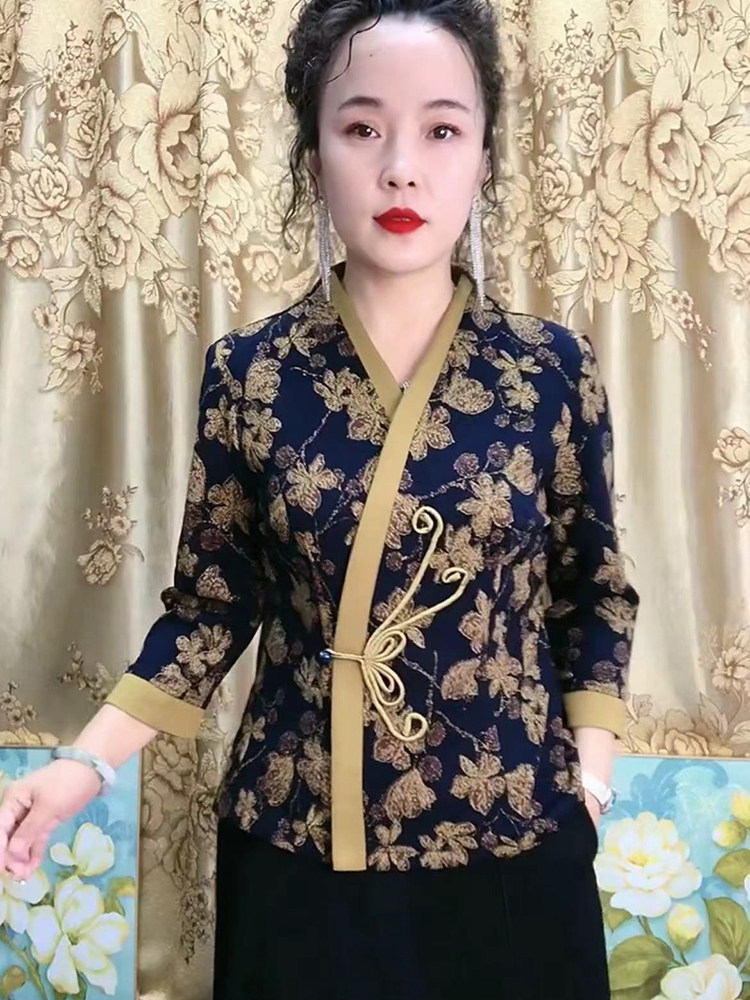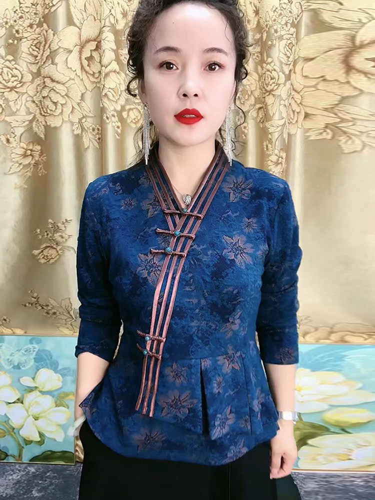 Демисезонное ципао, приталенная этническая рубашка, для среднего возраста, китайский стиль