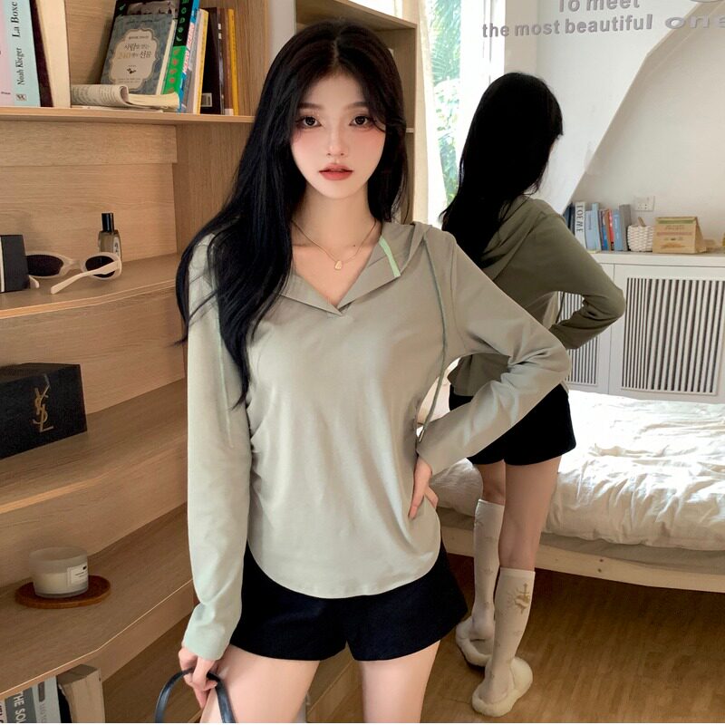 Модная приталенная футболка, базовый приятный телу лонгслив с капюшоном, большой размер, осенняя, по фигуре