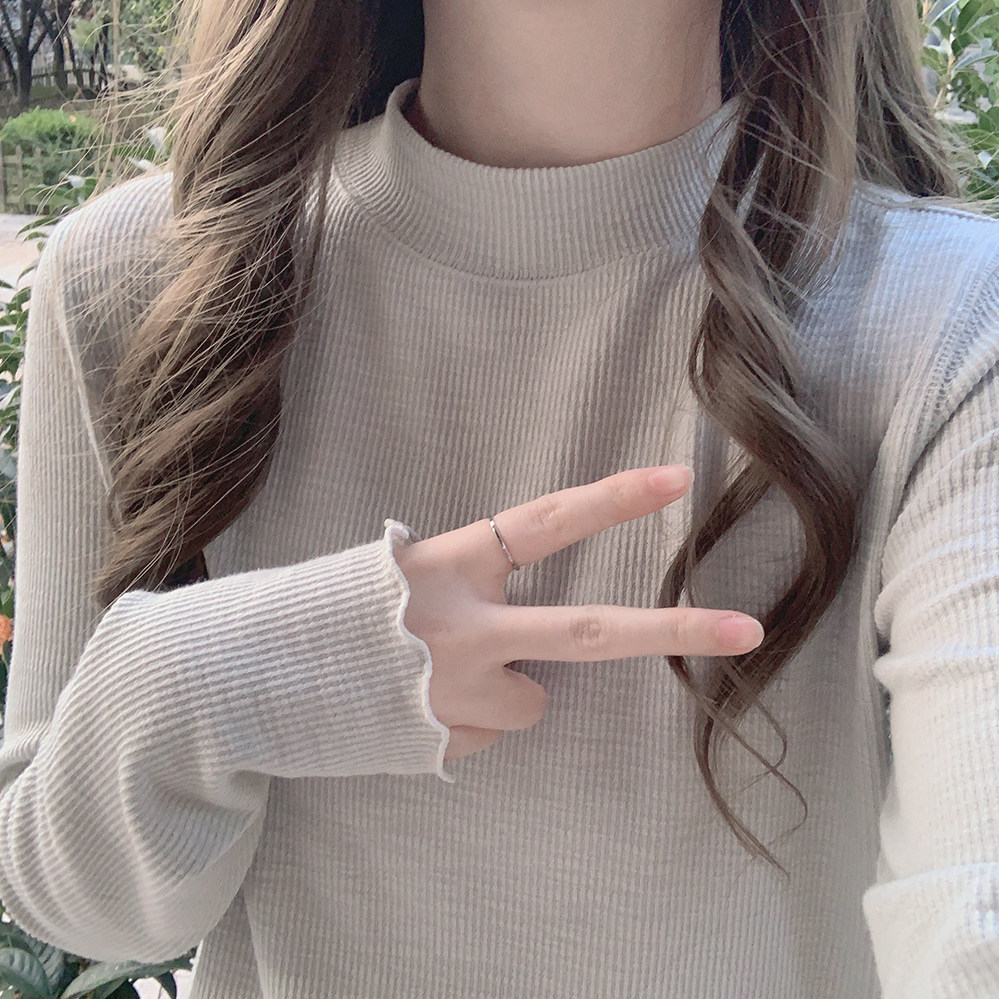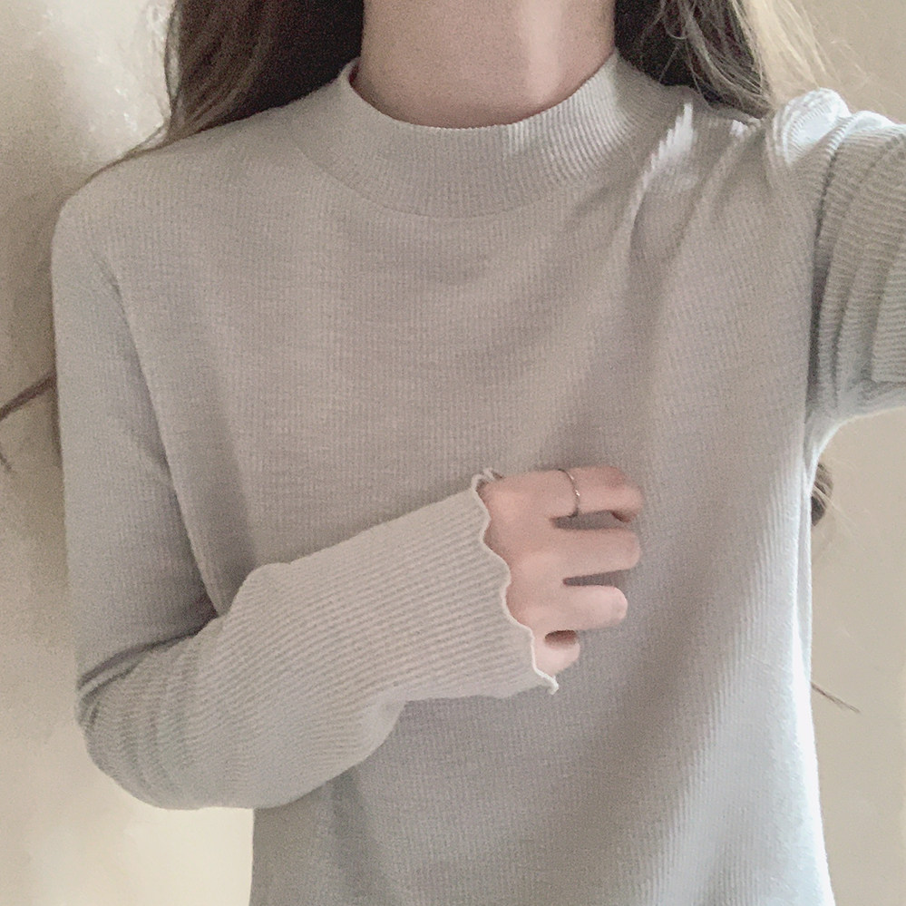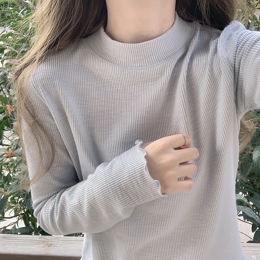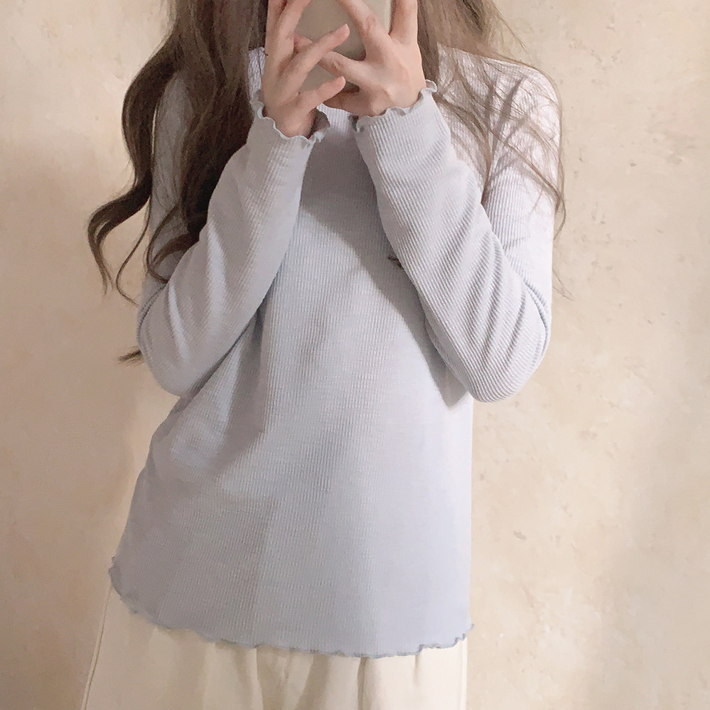 Базовый синий приятный телу лонгслив, футболка, высокий воротник