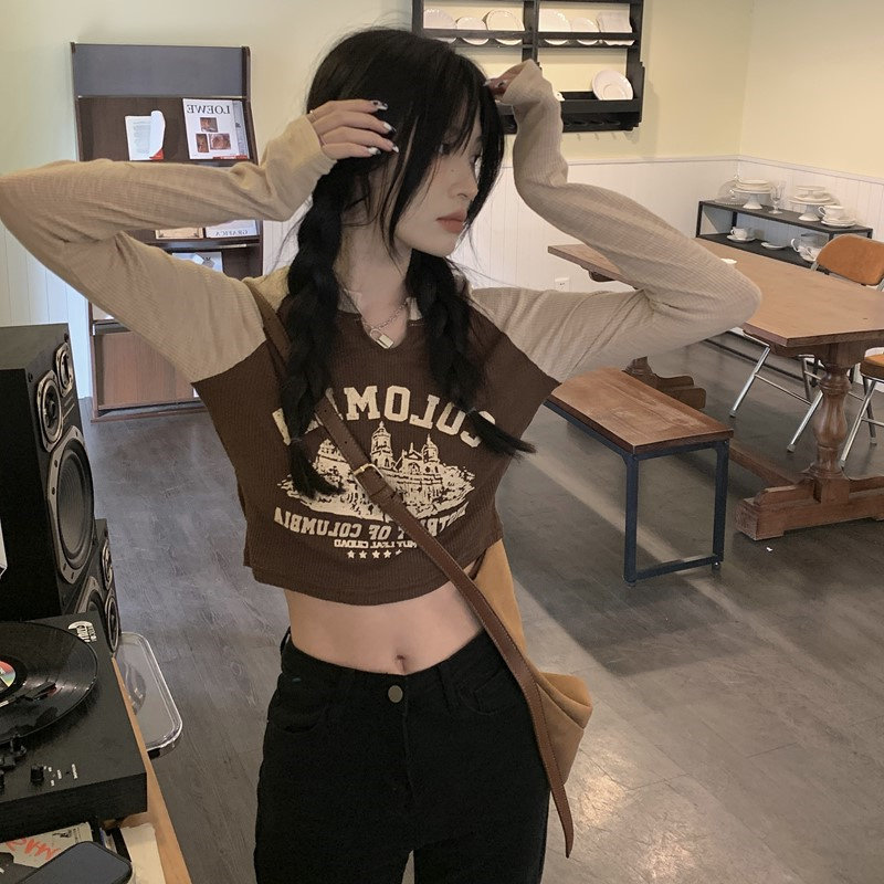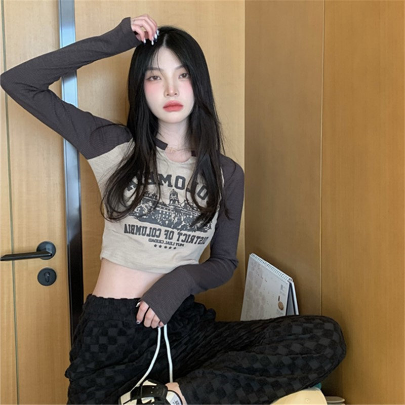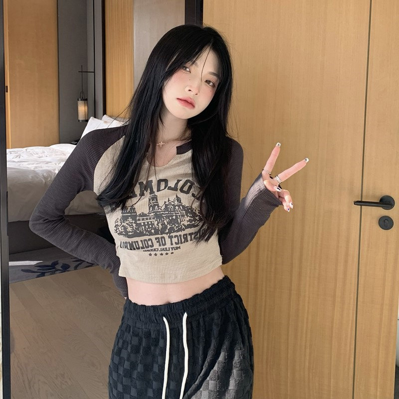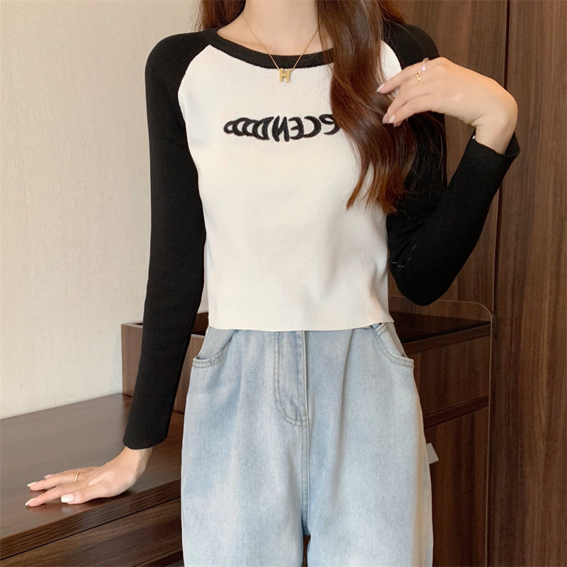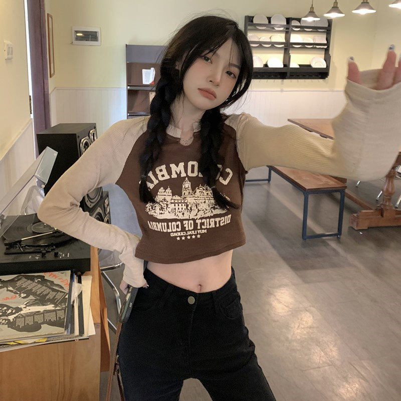 Осенний короткий базовый приятный телу лонгслив с круглым воротником, 2025 года