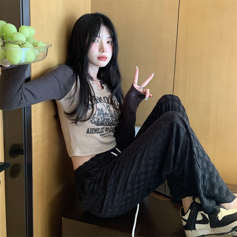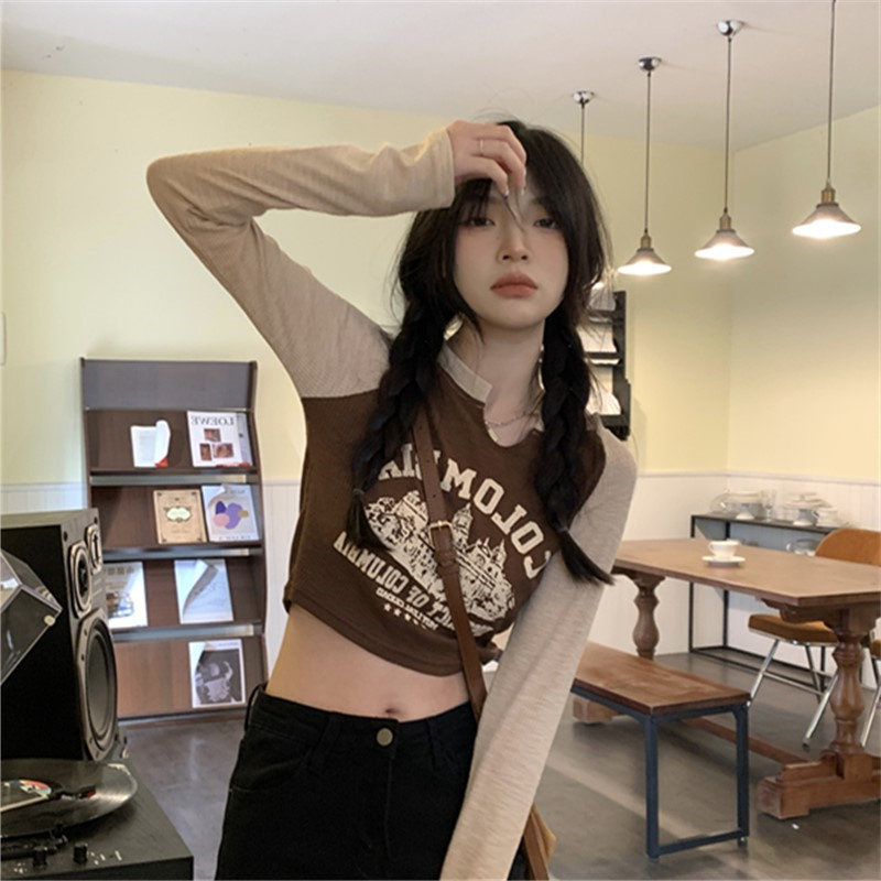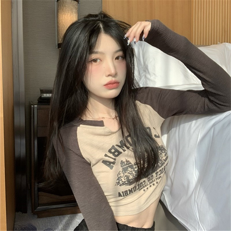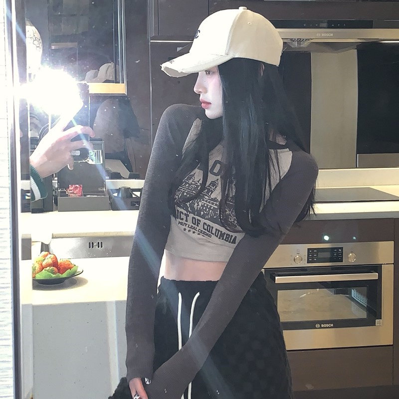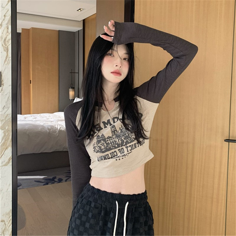 Осенний короткий базовый приятный телу лонгслив с круглым воротником, 2025 года