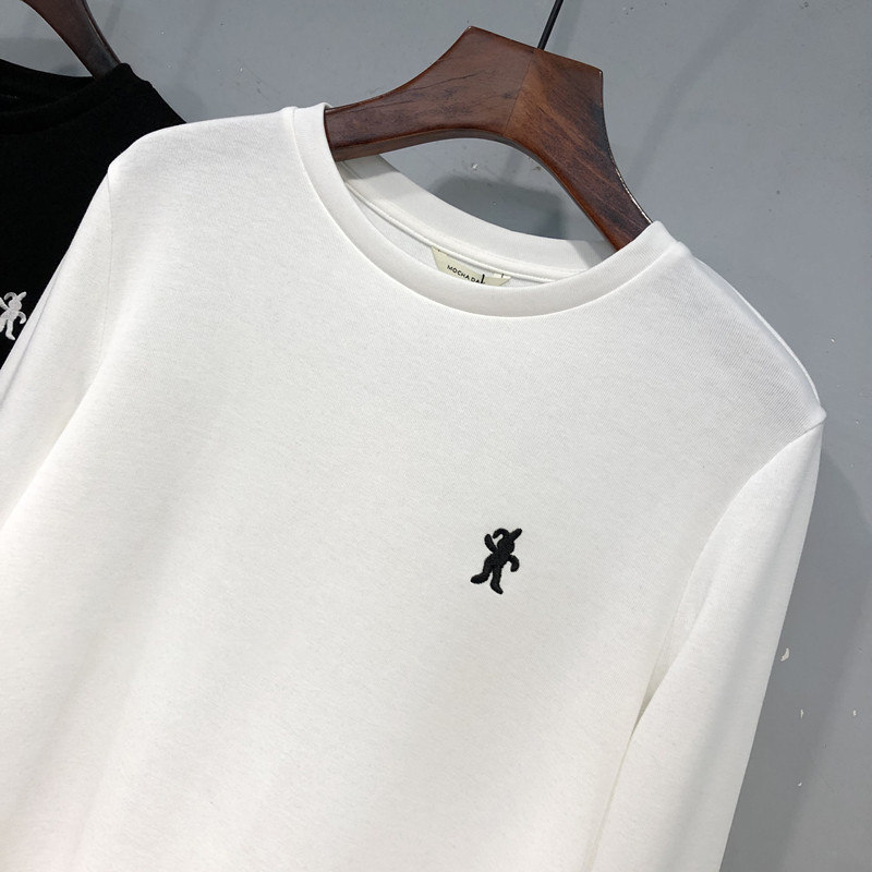 Флисовый базовый приятный телу демисезонный белый цветной длинный хлопковый лонгслив, изысканный стиль, увеличенная толщина, с вышивкой