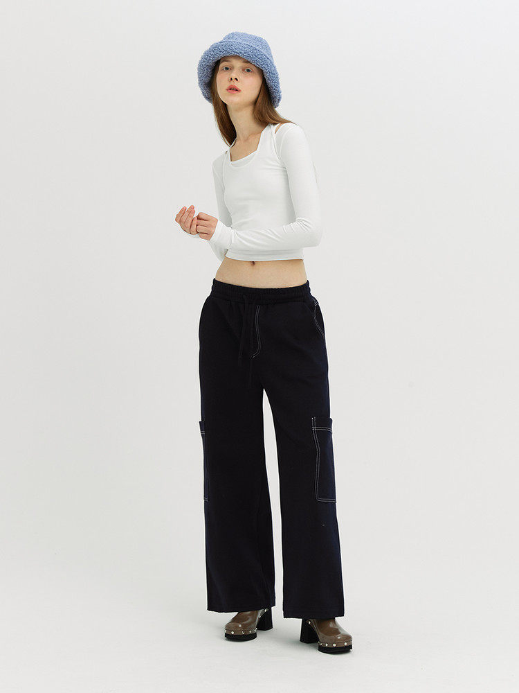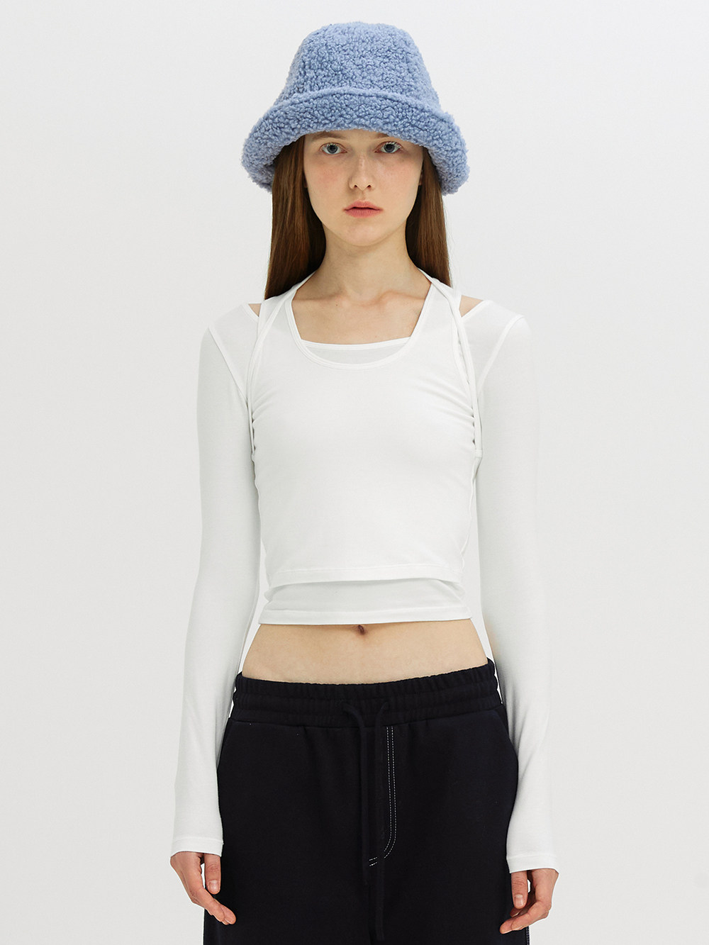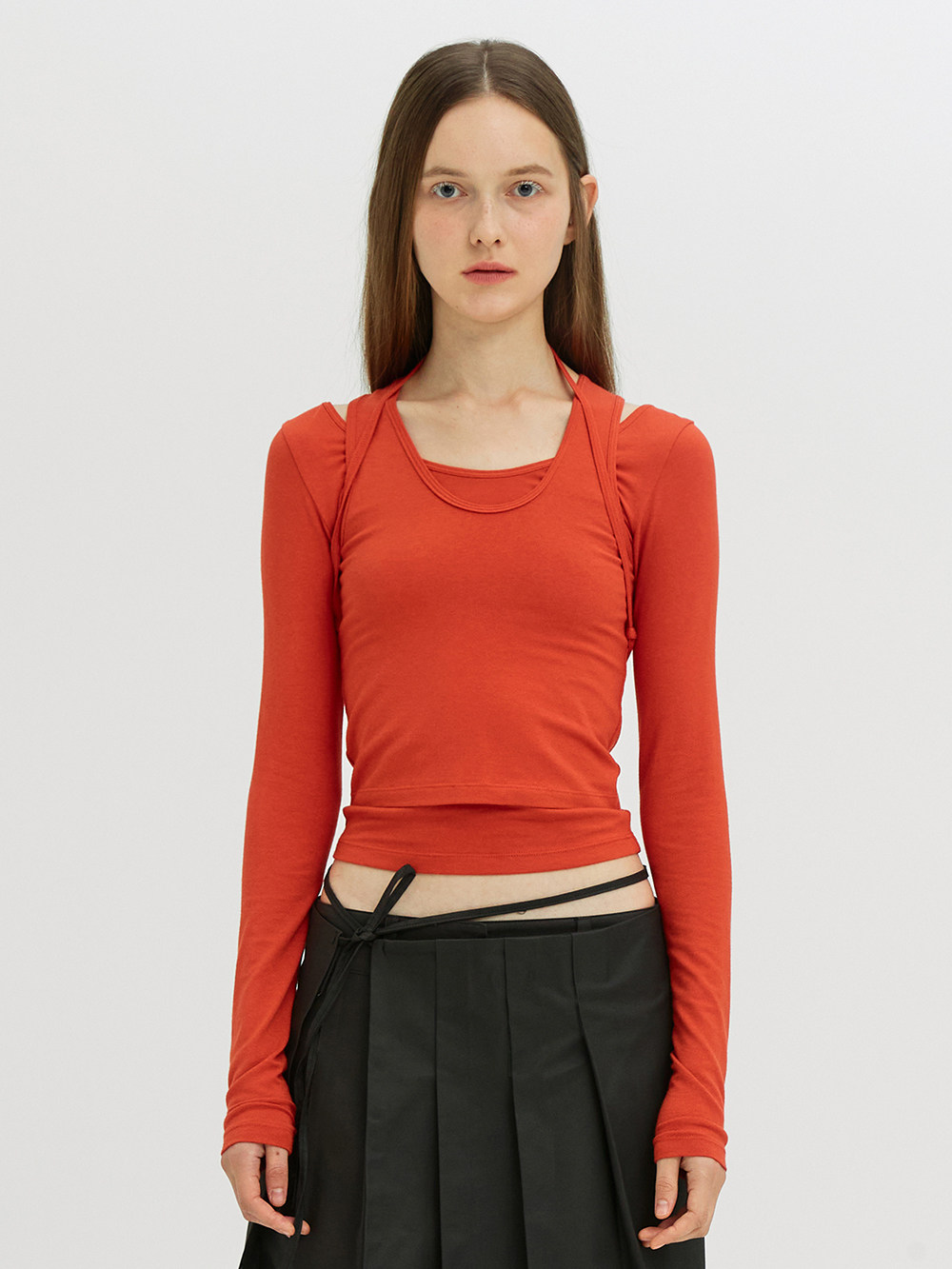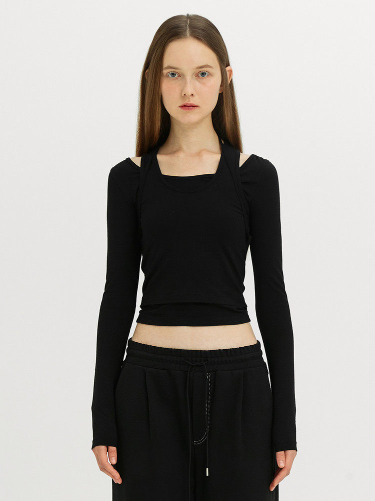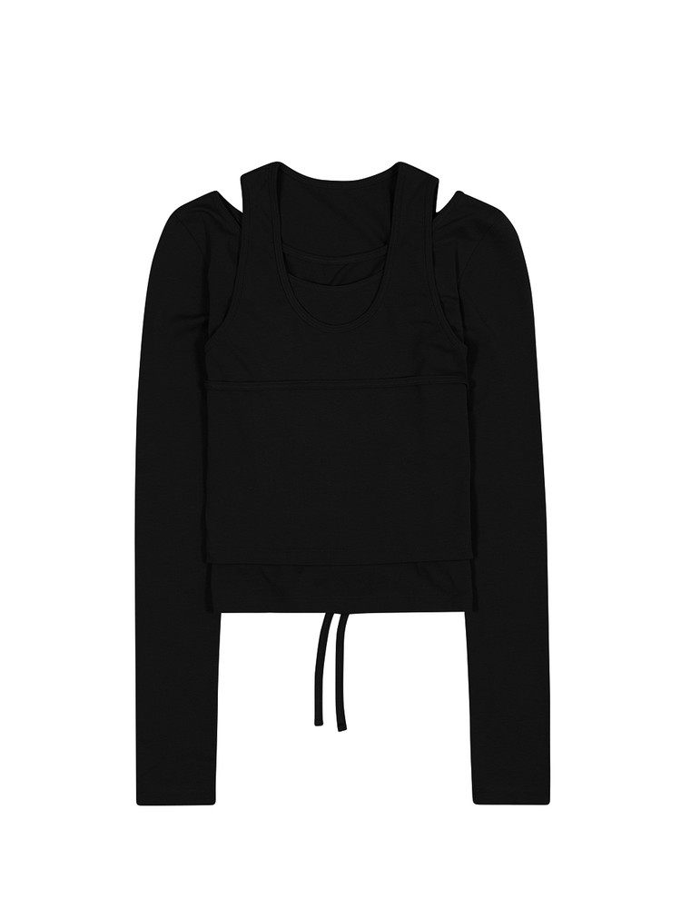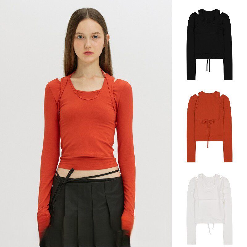 Уникальный нишевый индивидуальный SEI осенне-зимний милый однотонный многослойный пуловер с ремешками, тонкая футболка с длинными рукавами, топ