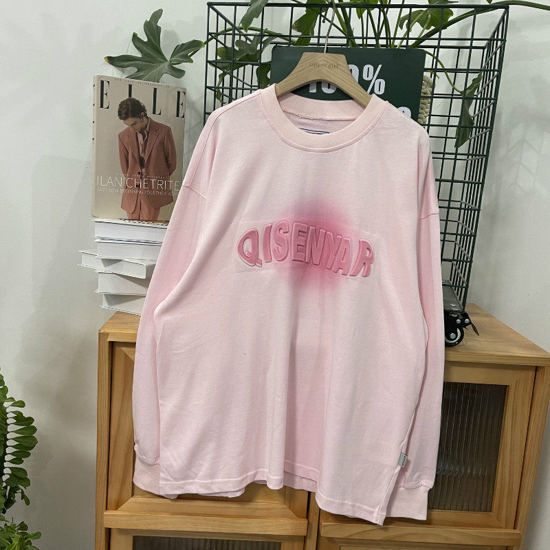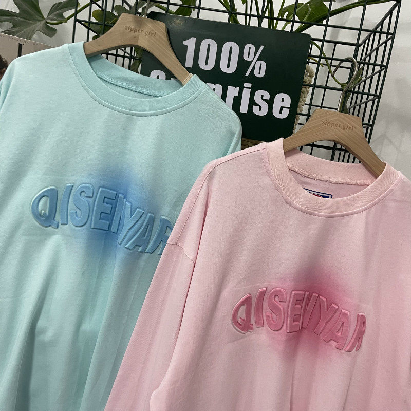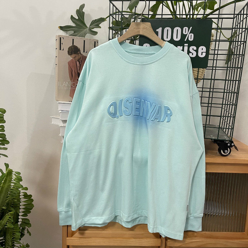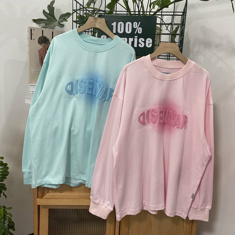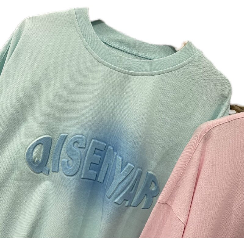 Хлопковый трехмерный лонгслив с круглым воротником, комплект, градиент
