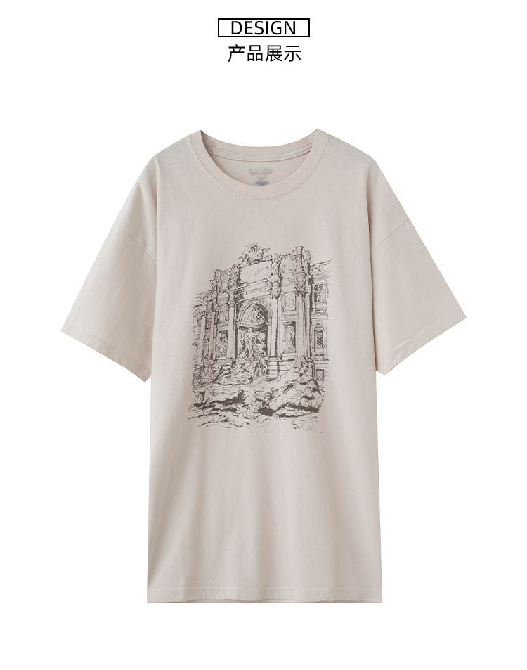 Замок, футболка с круглым воротником, европейский стиль, коллекция 2023, оверсайз