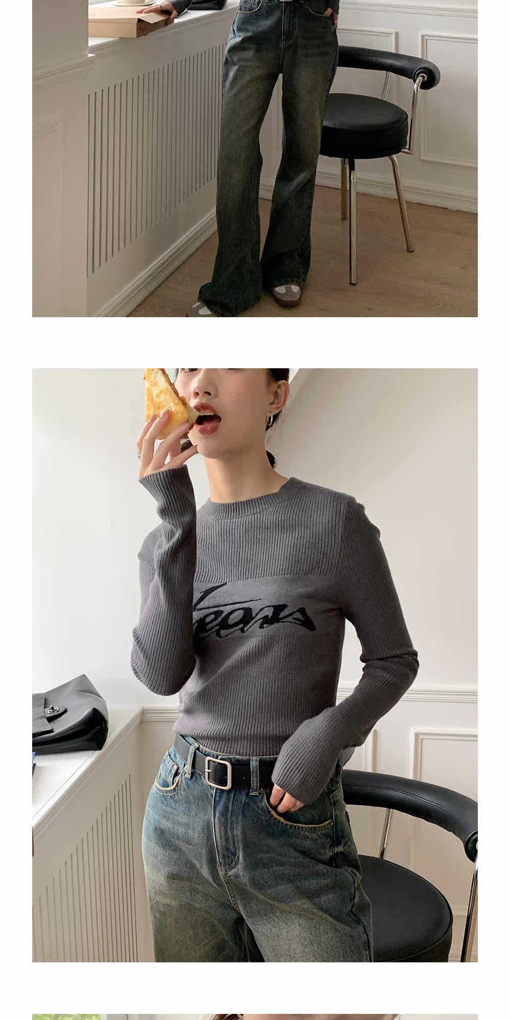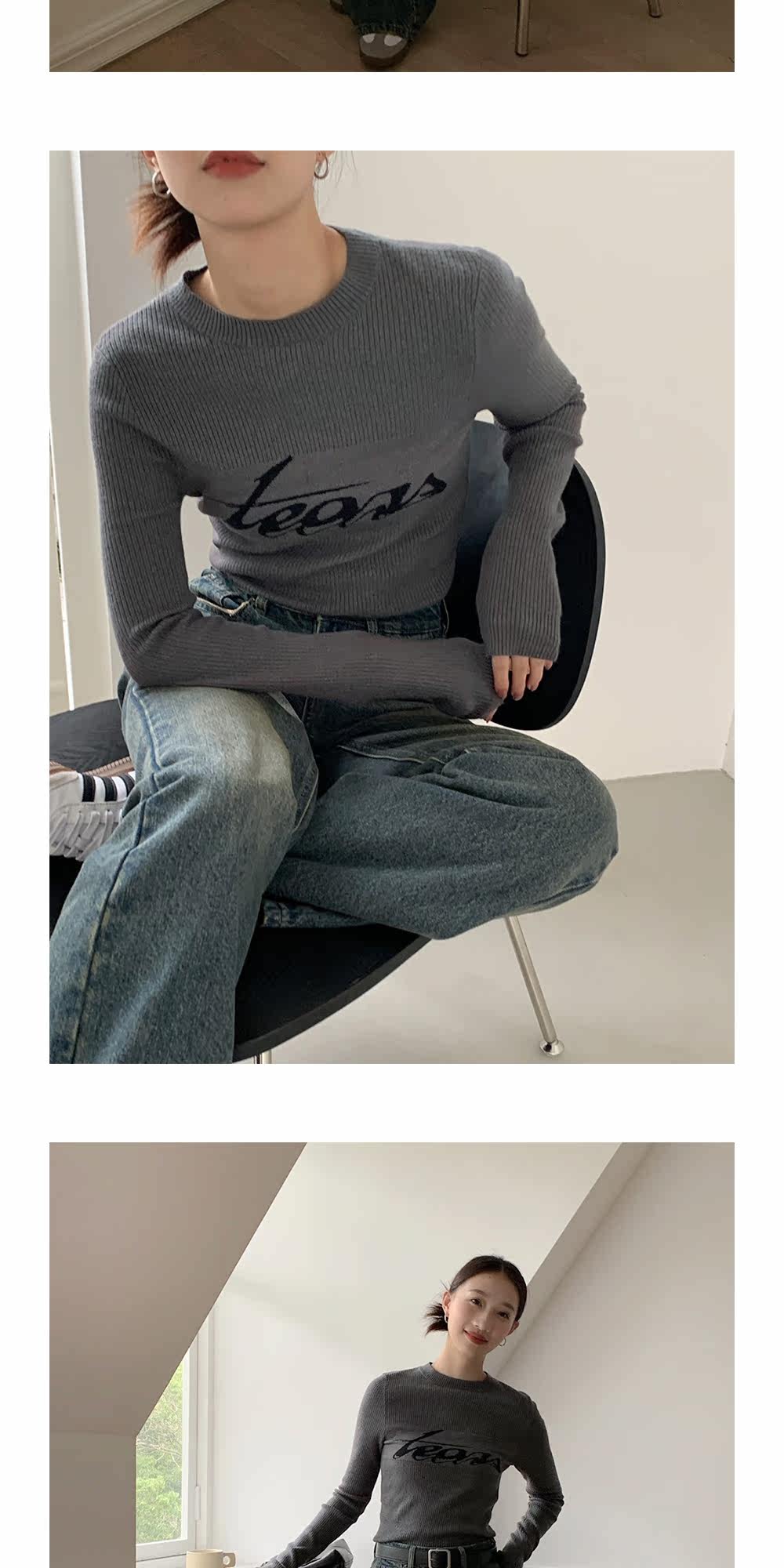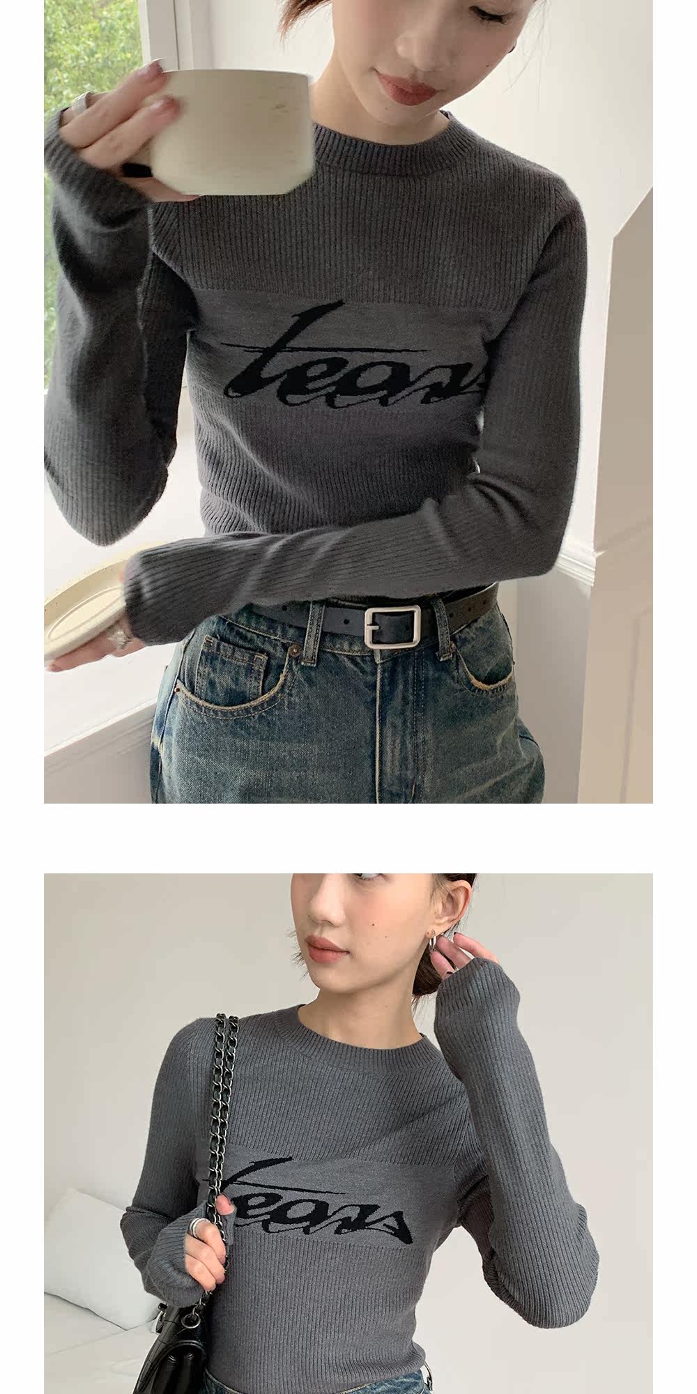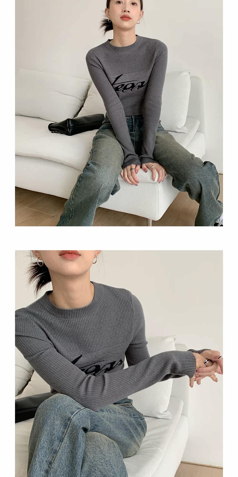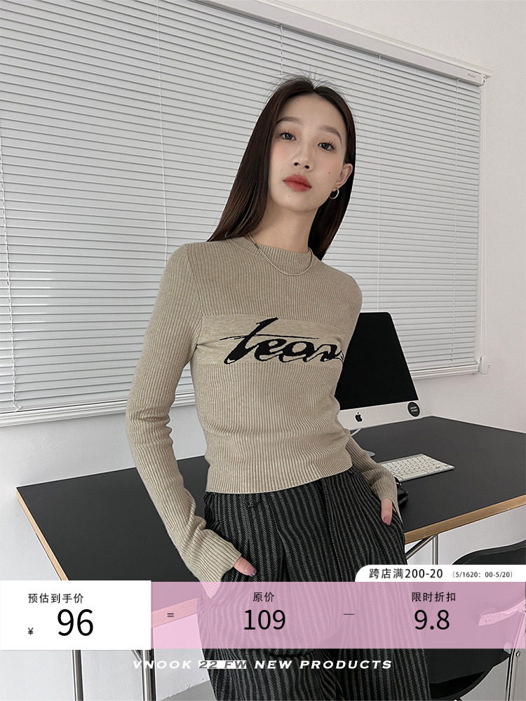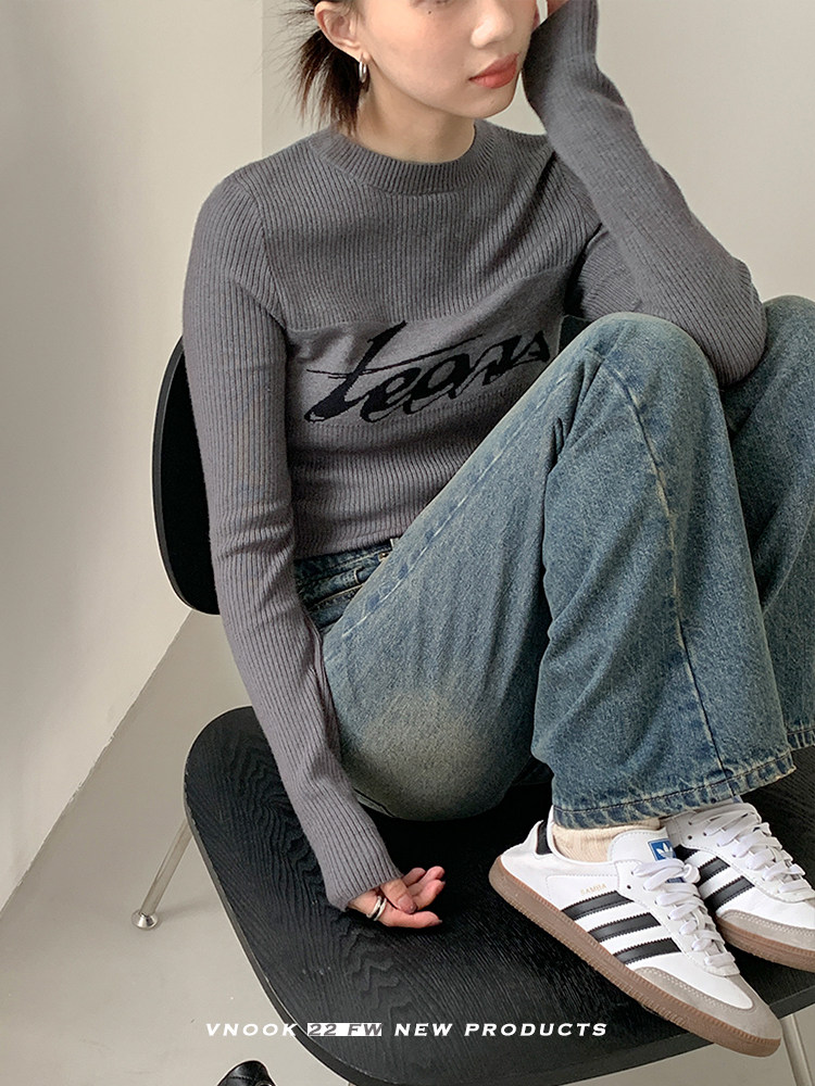 Базовый приятный телу модный трикотажный свитер с круглым воротником, футболка, в западном стиле