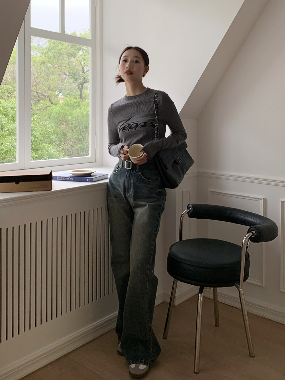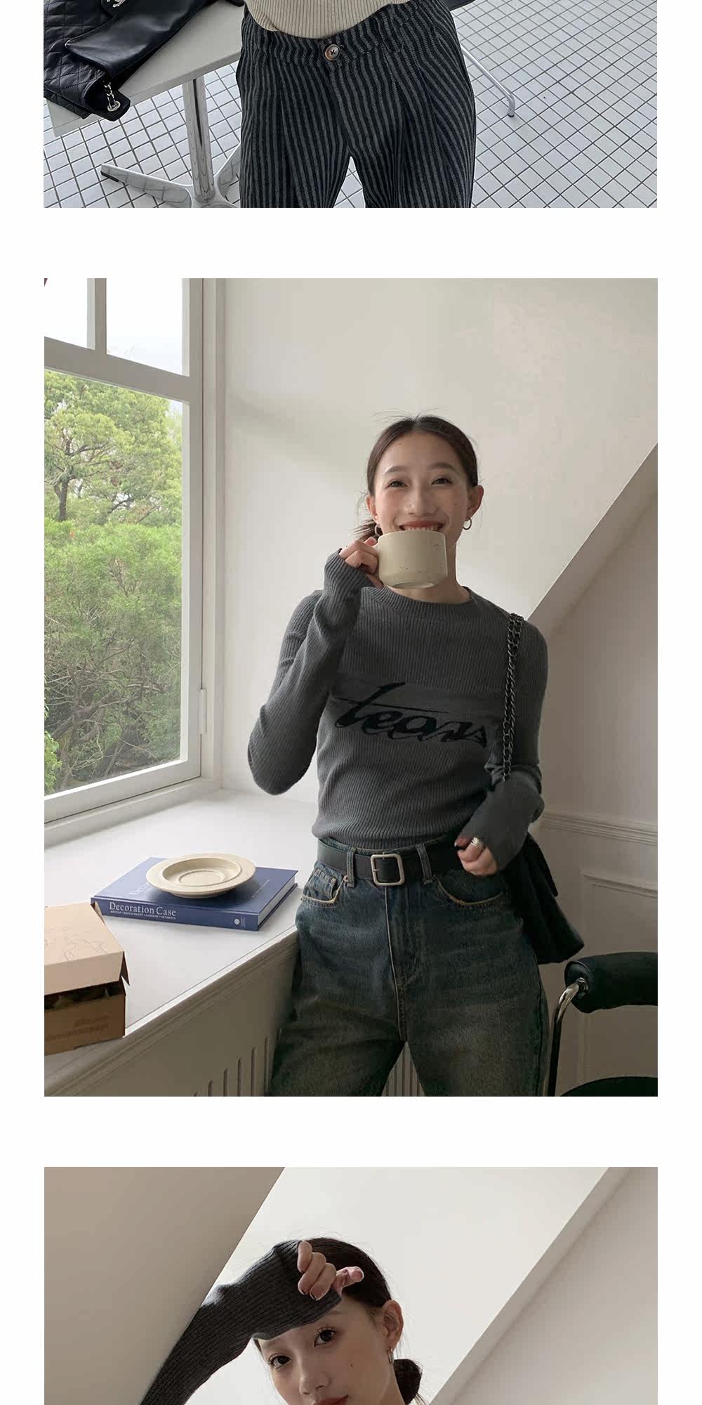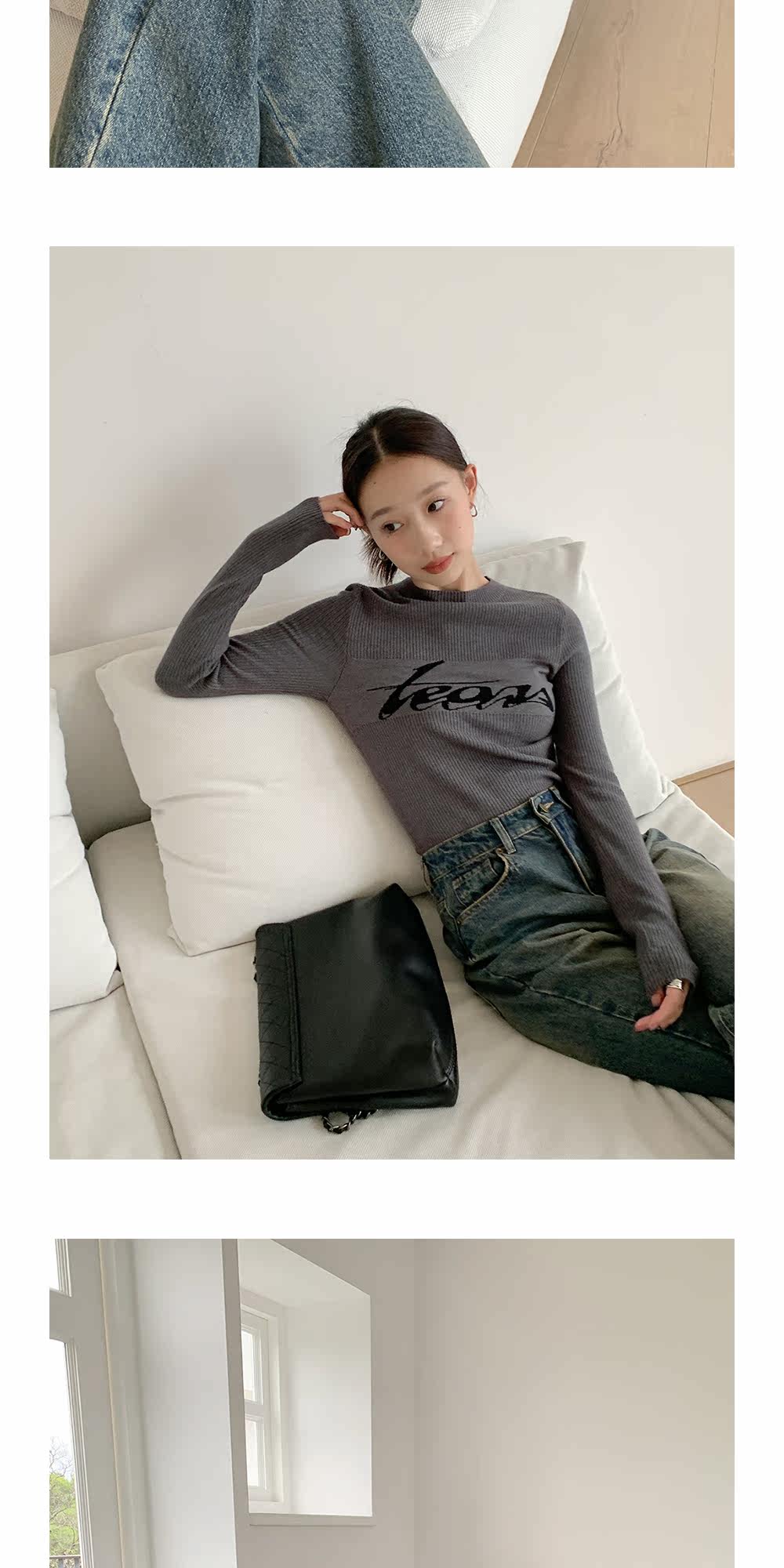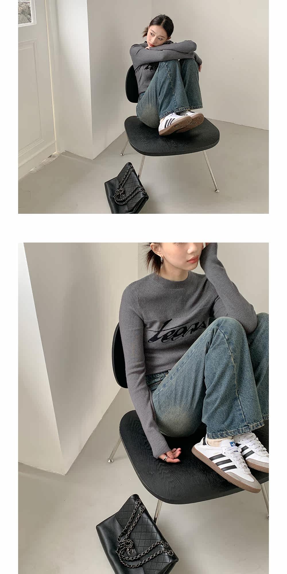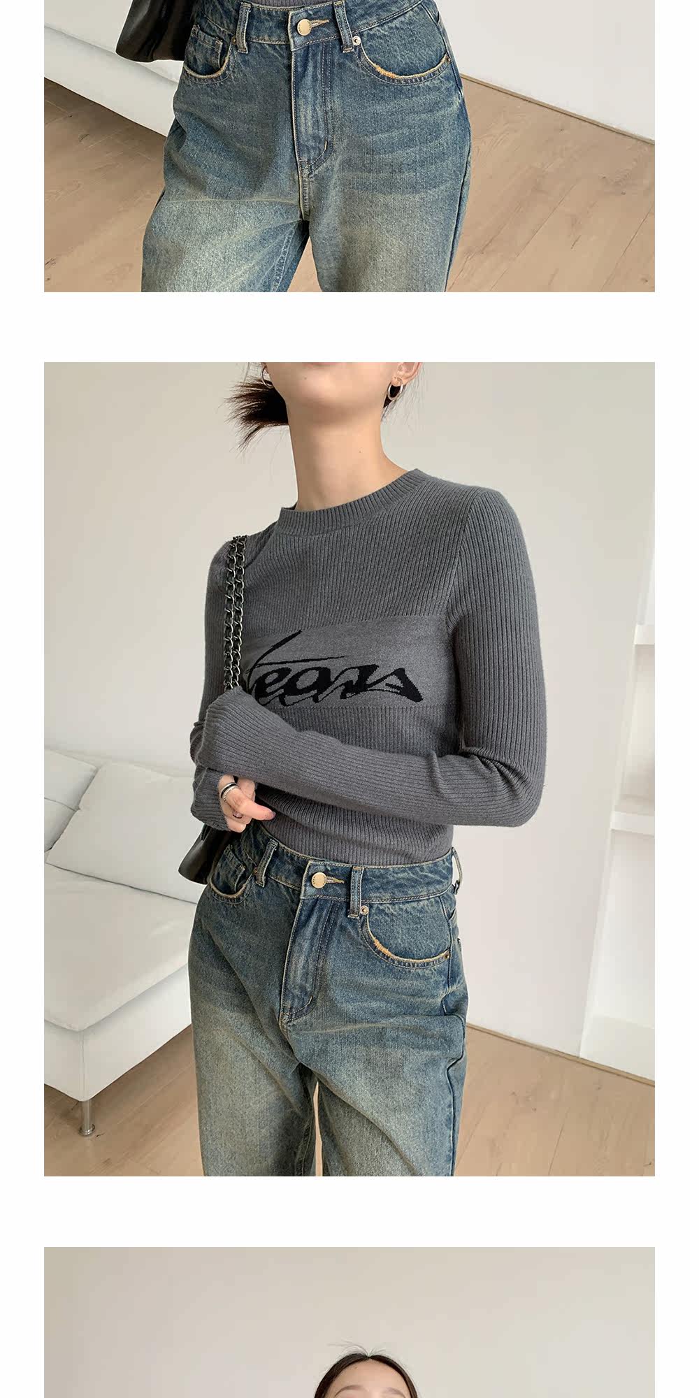 Базовый приятный телу модный трикотажный свитер с круглым воротником, футболка, в западном стиле