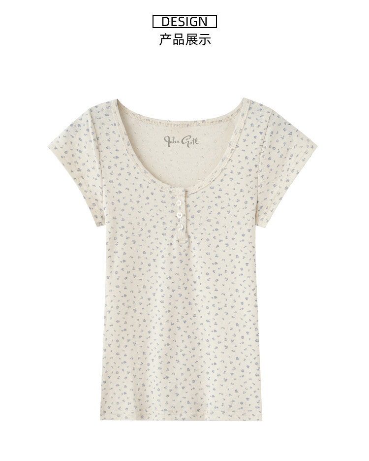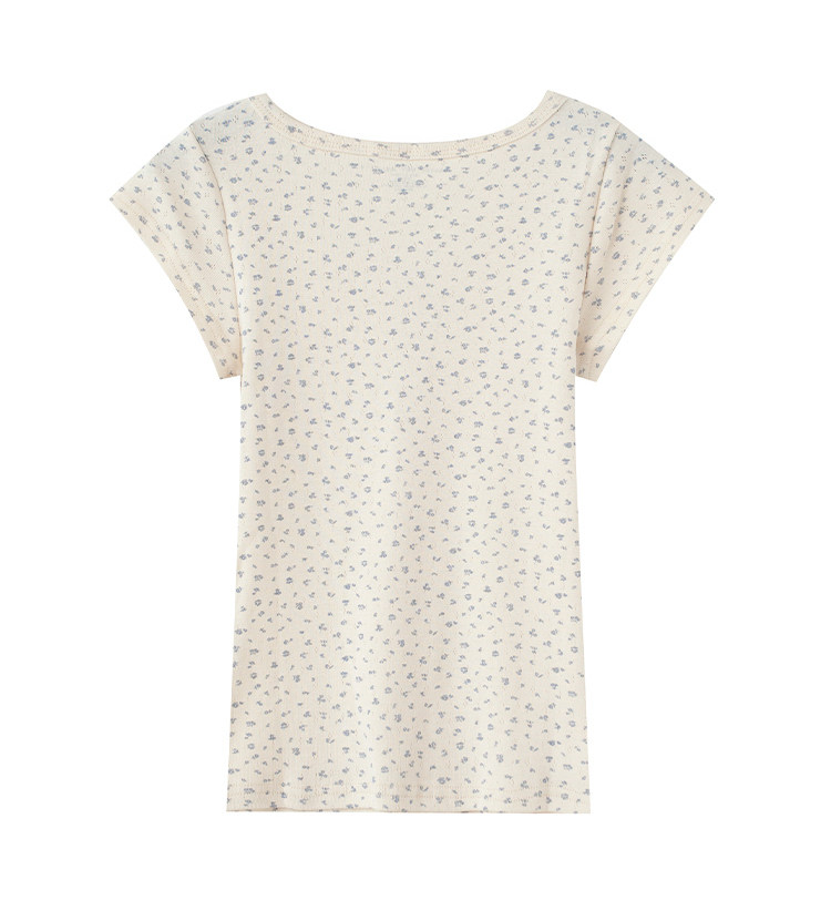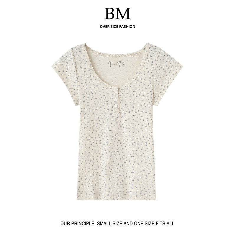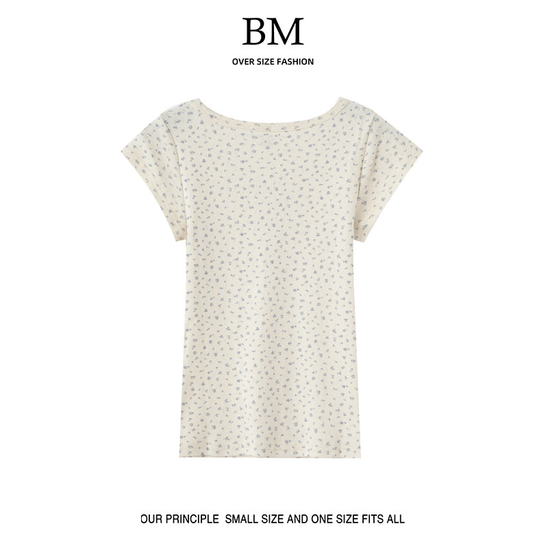 Ретро свежая футболка с коротким рукавом с круглым воротником, в американском стиле, цветочный принт, облегающий крой