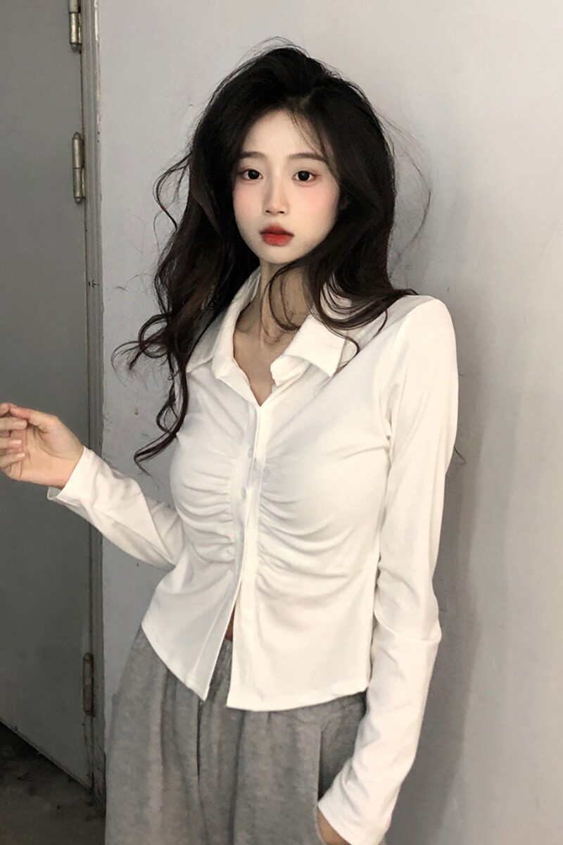 Осенняя приталенная рубашка, корсет, базовый приятный телу лонгслив, большой размер, воротник поло