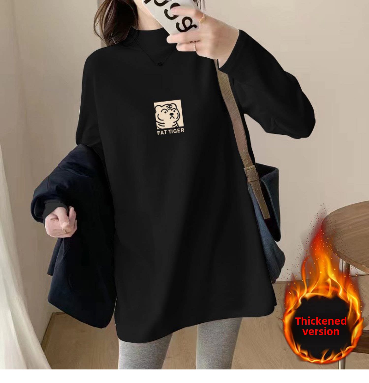 Бархатный базовый приятный телу длинный лонгслив, акула, штаны, высокий воротник, свободный крой, средней длины, увеличенная толщина