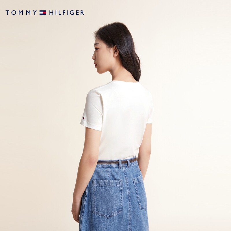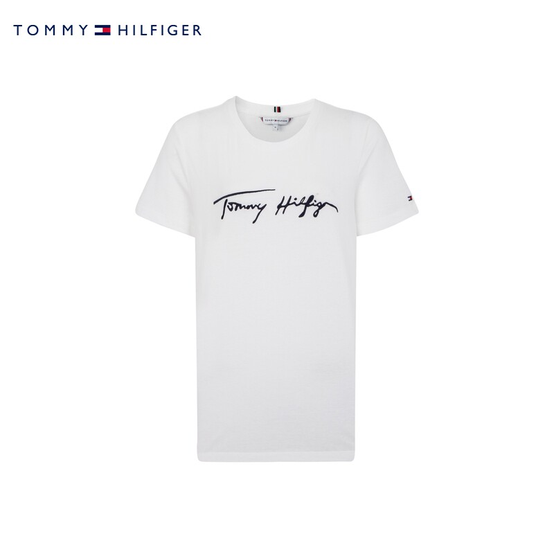 Женская футболка Tommy из чистого хлопка с простой фирменной вышивкой, круглым вырезом и короткими рукавами XW0XW02390