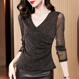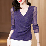 Базовый приятный телу осенний лонгслив, модная футболка, 2024 года, городской стиль, V-образный вырез