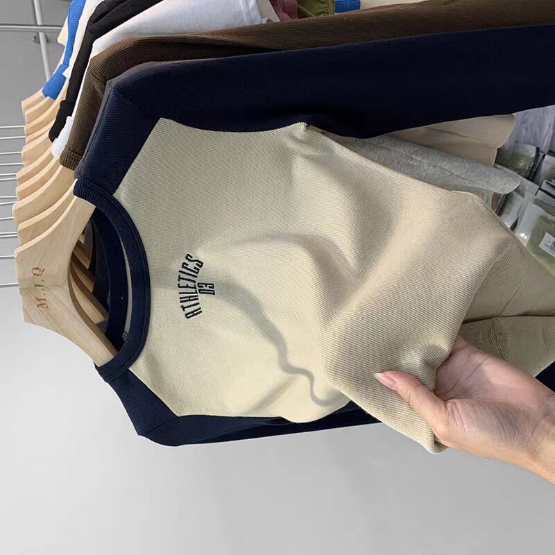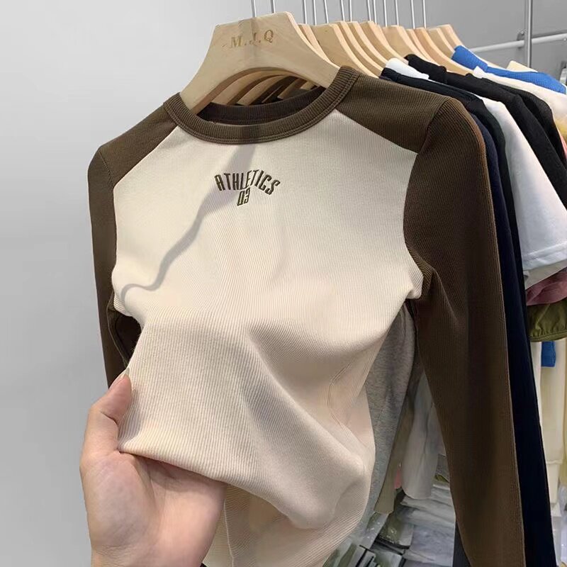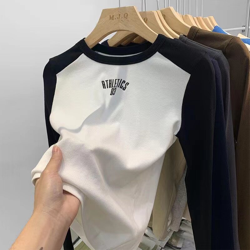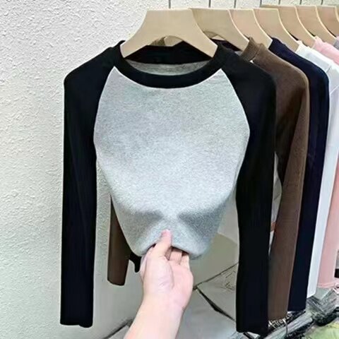 Футболка, осенний базовый приятный телу короткий лонгслив, облегающий крой
