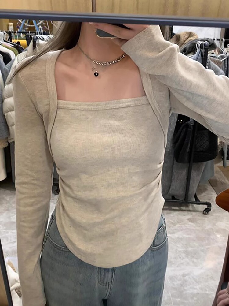 Базовый приятный телу сексуальный приталенный лонгслив, квадратный вырез