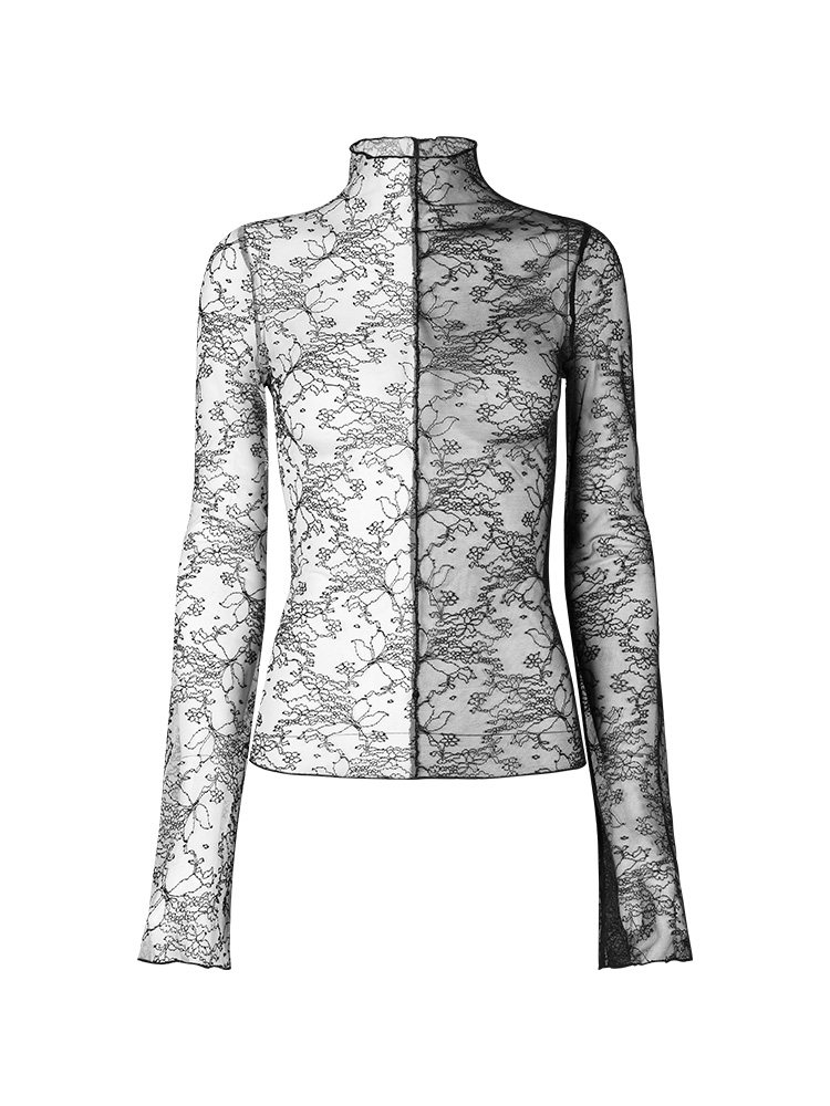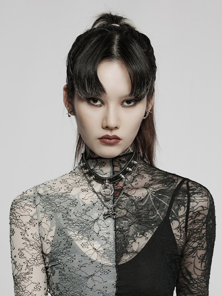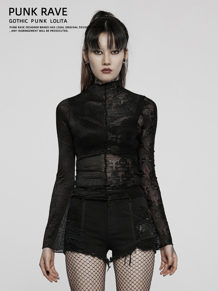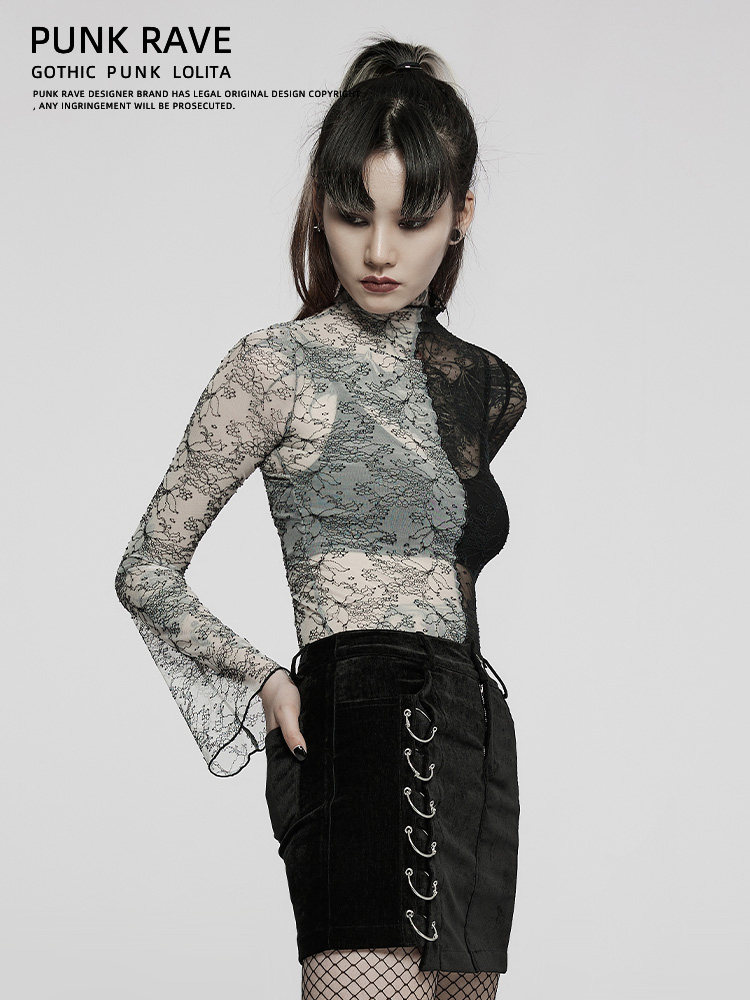 Кружевной базовый приятный телу лонгслив, демисезонная футболка, в стиле панк