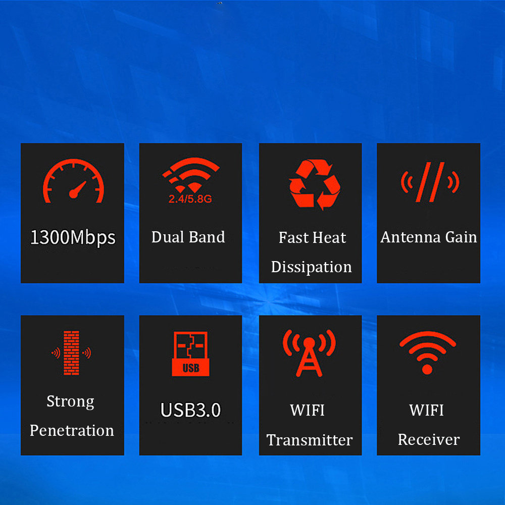 Wi-Fi USB 3.0 Адаптер 1300 Мбит / с двойной полосы 2,4 ГГц и 5 ГГц Wi-Fi Re