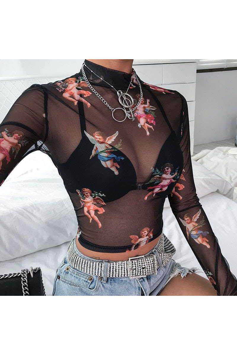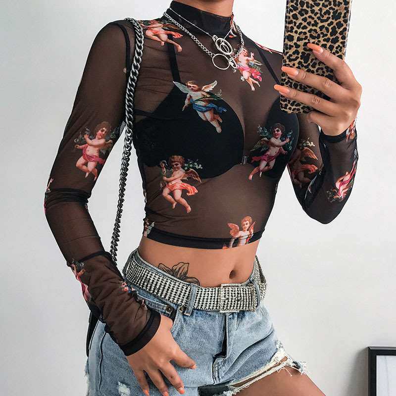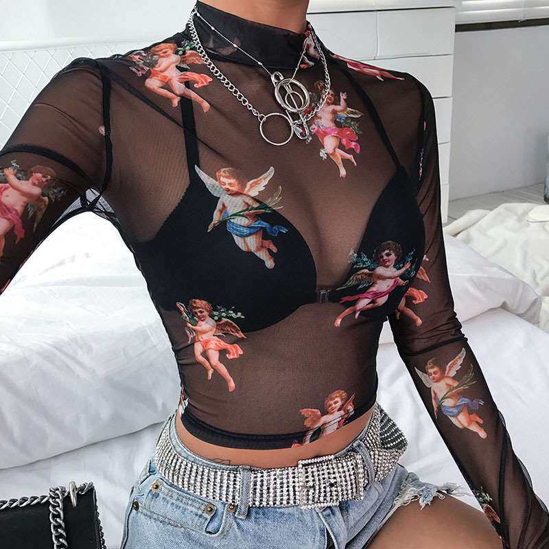 Футболка с длинными рукавами женская осенняя наполовину водолазки Mes