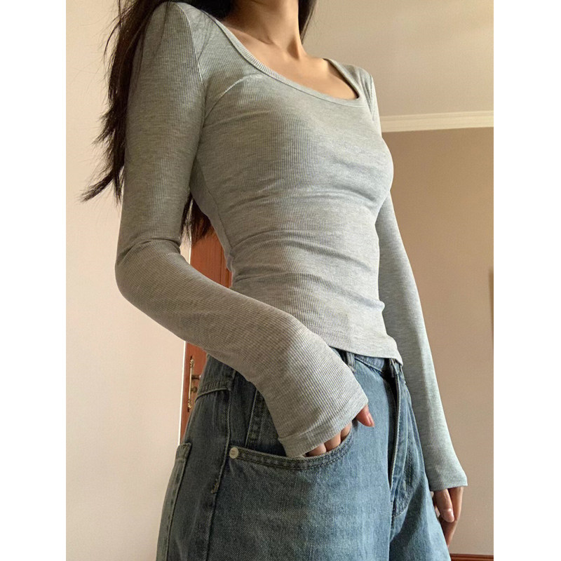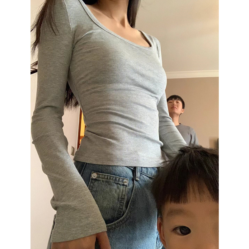 Демисезонный базовый приятный телу короткий лонгслив, квадратный вырез