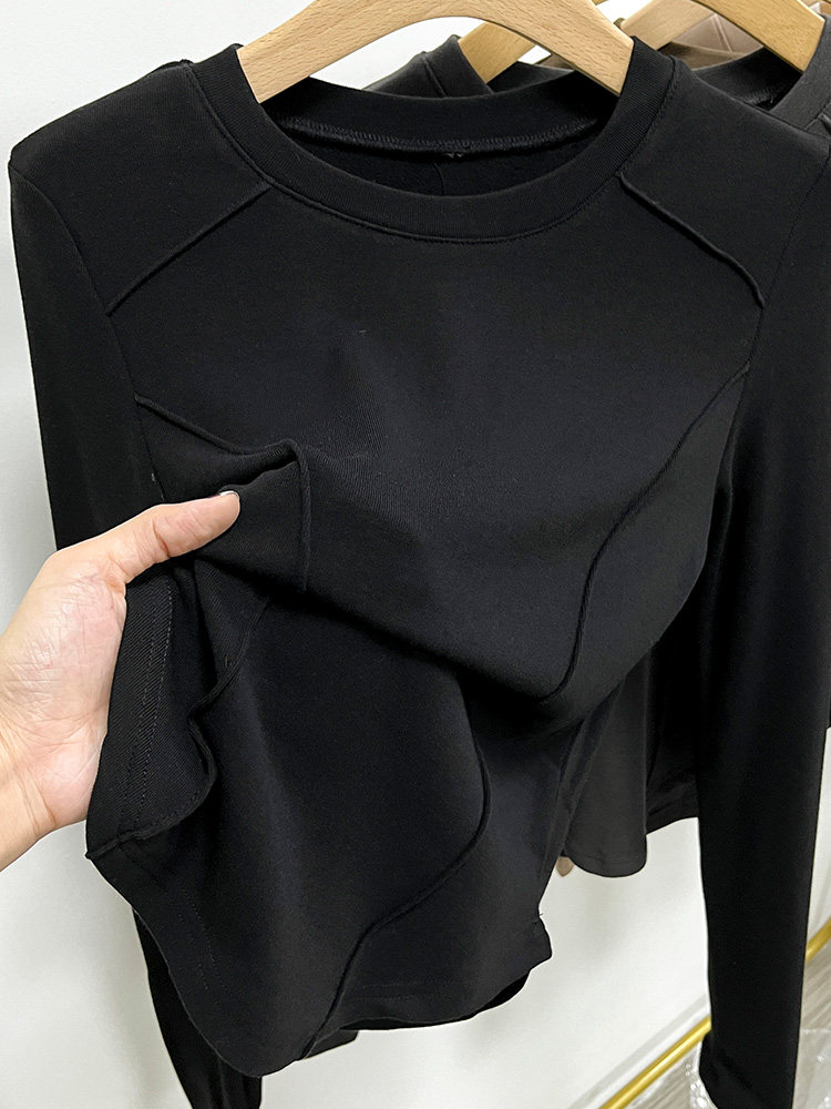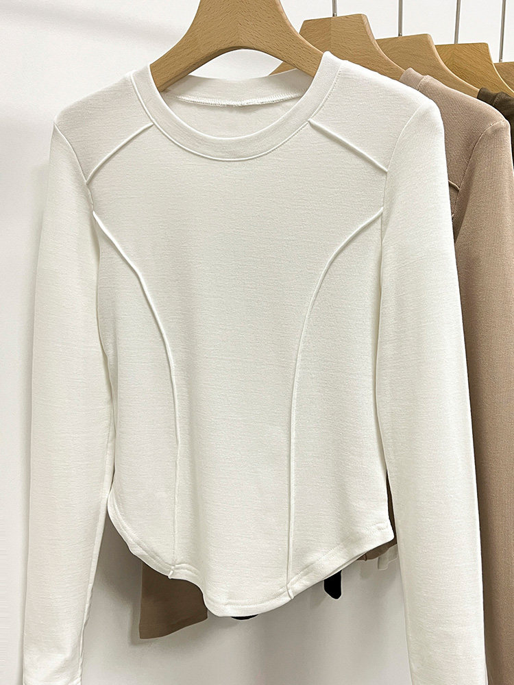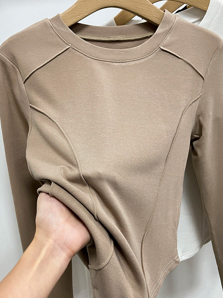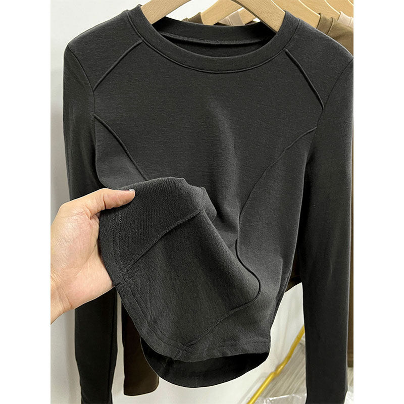 Бархатный базовый приятный телу утепленный лонгслив, облегающий крой, в западном стиле