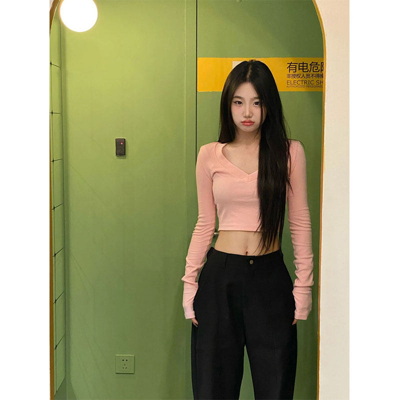 Розовый осенний сексуальный короткий лонгслив