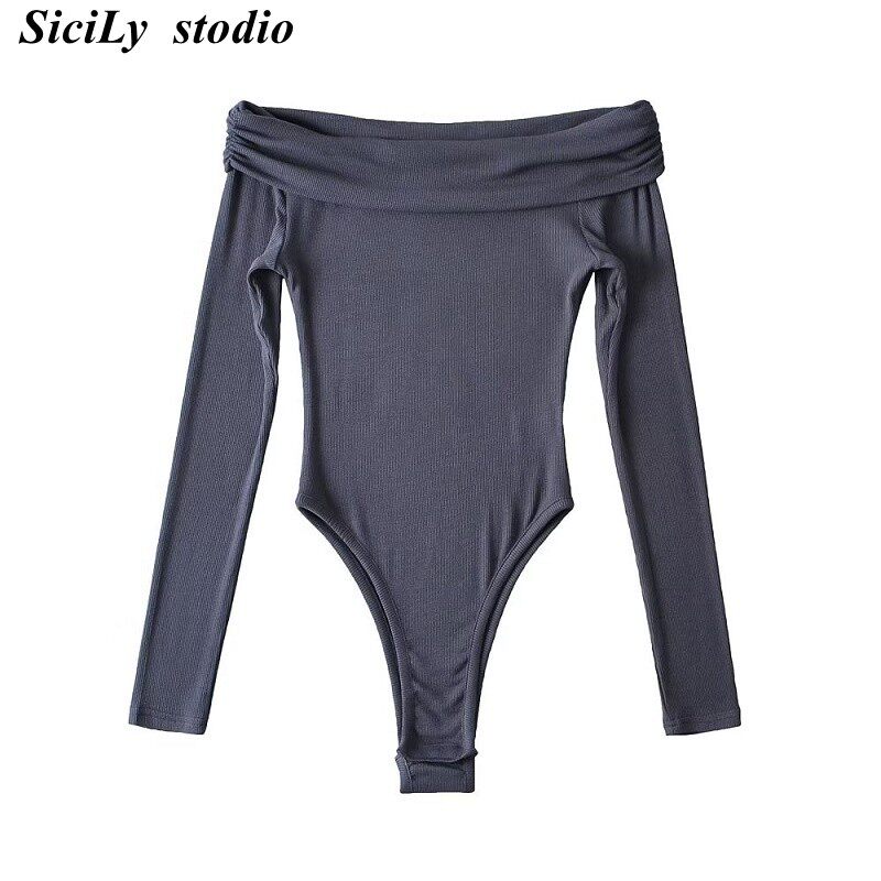 Сицилийский модный однотонный комбинезон с длинными рукавами и лацканами на одно плечо для женщин с модным темпераментом и универсальным трендом
