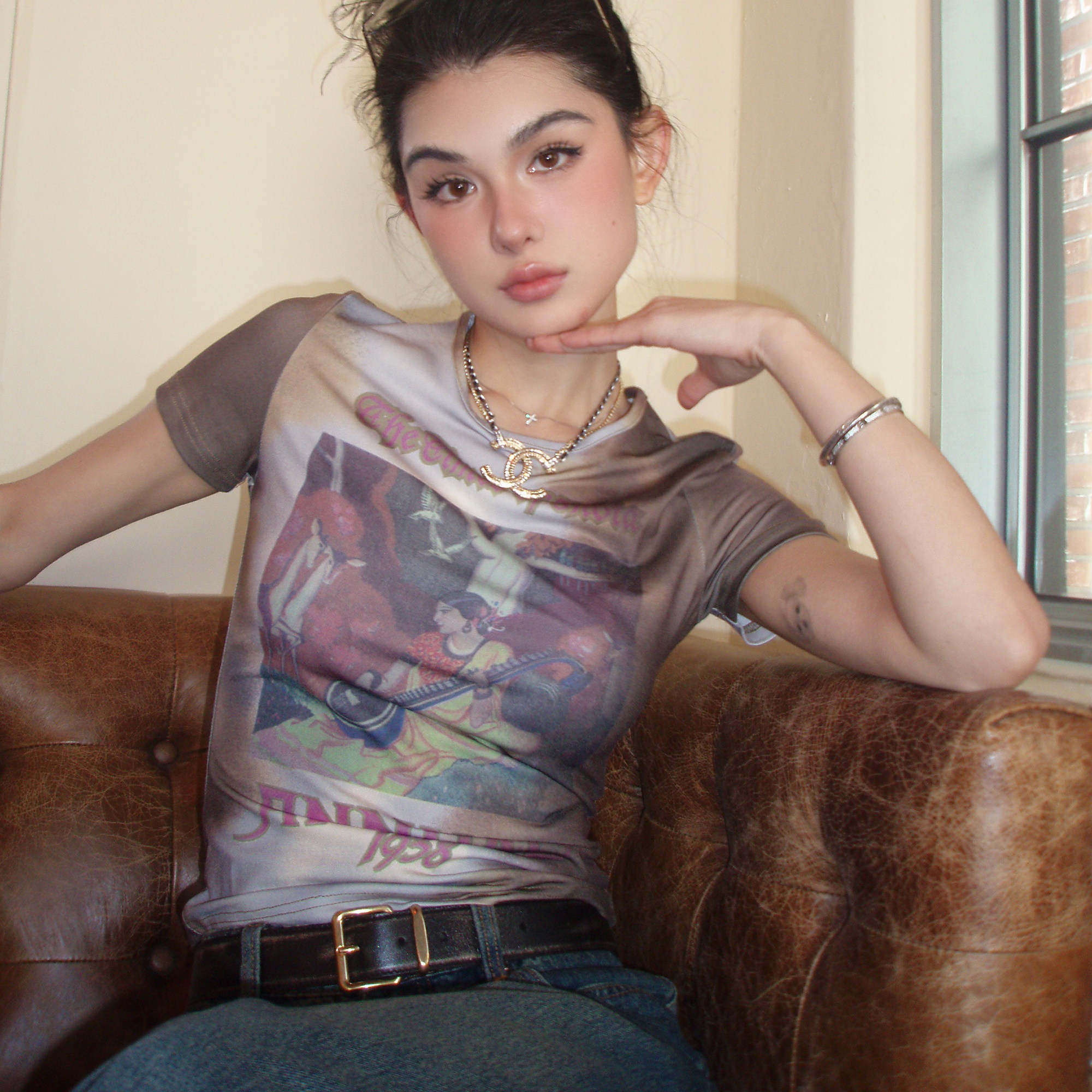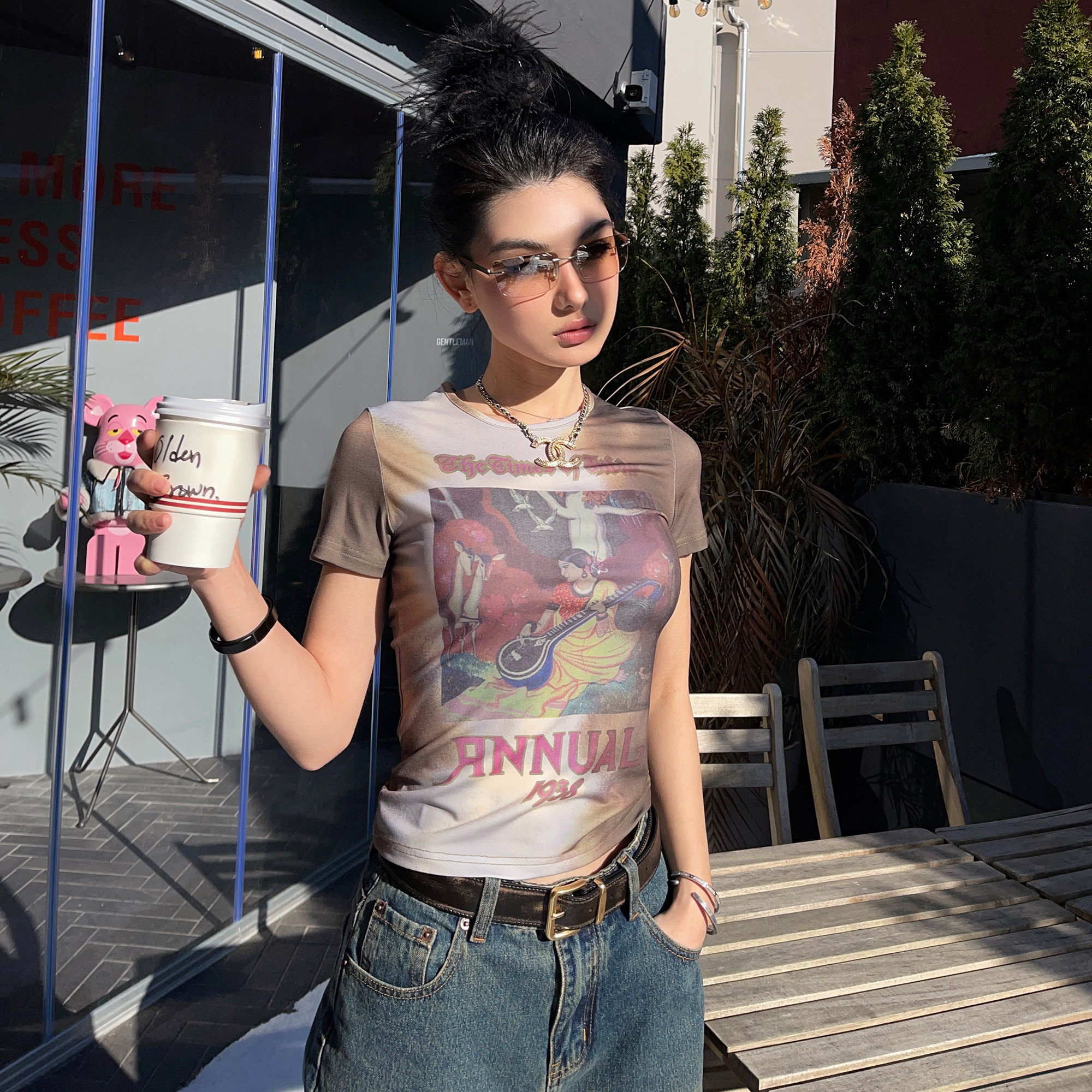 Французская эстетика Icvibe поражает американский ретро · масляная живопись, рисовой коричневый слоган малыш
