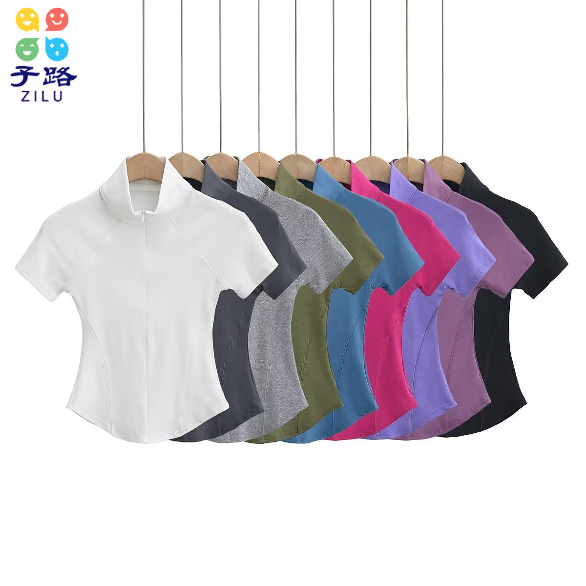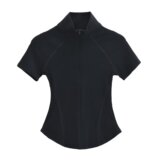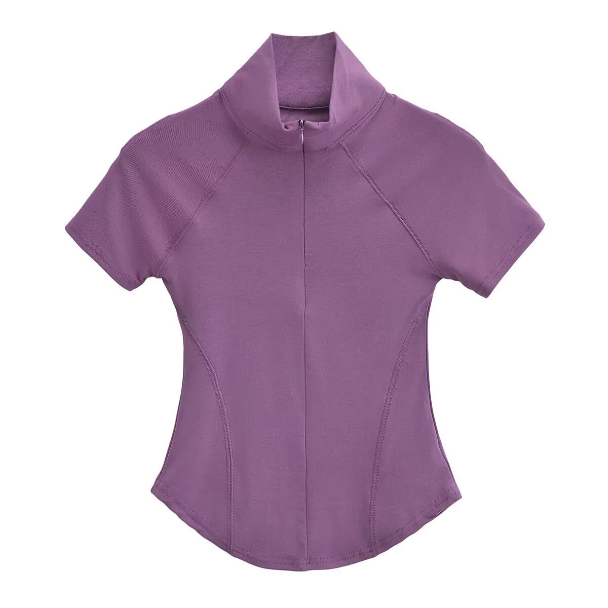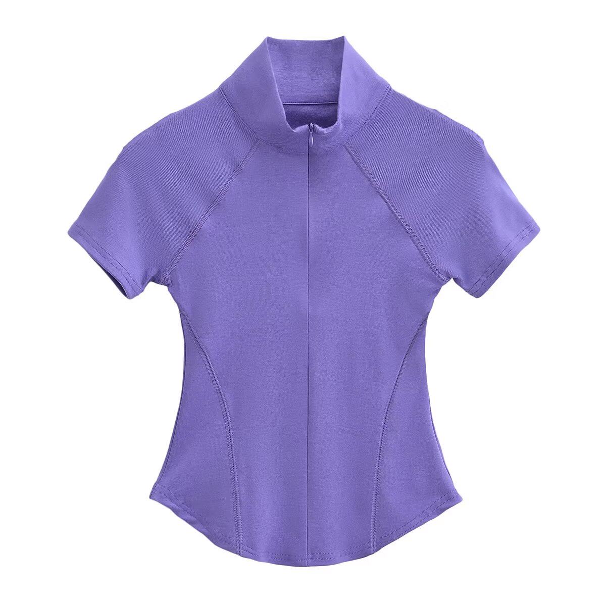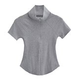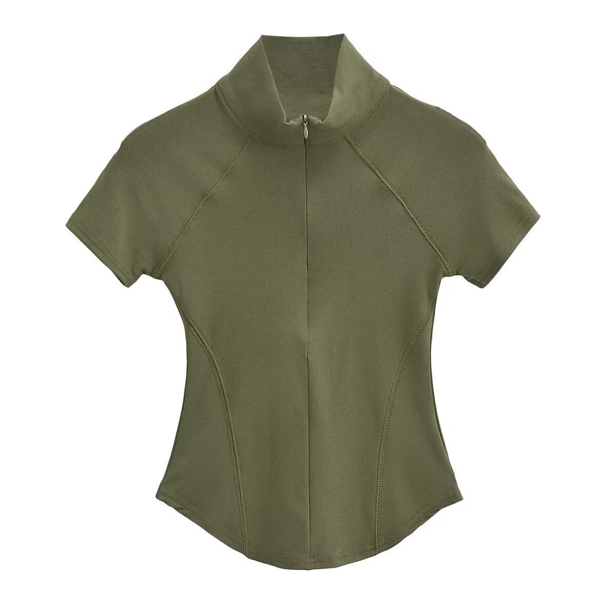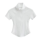 Приятная телу футболка с коротким рукавом с молнией, европейский стиль, на молнии