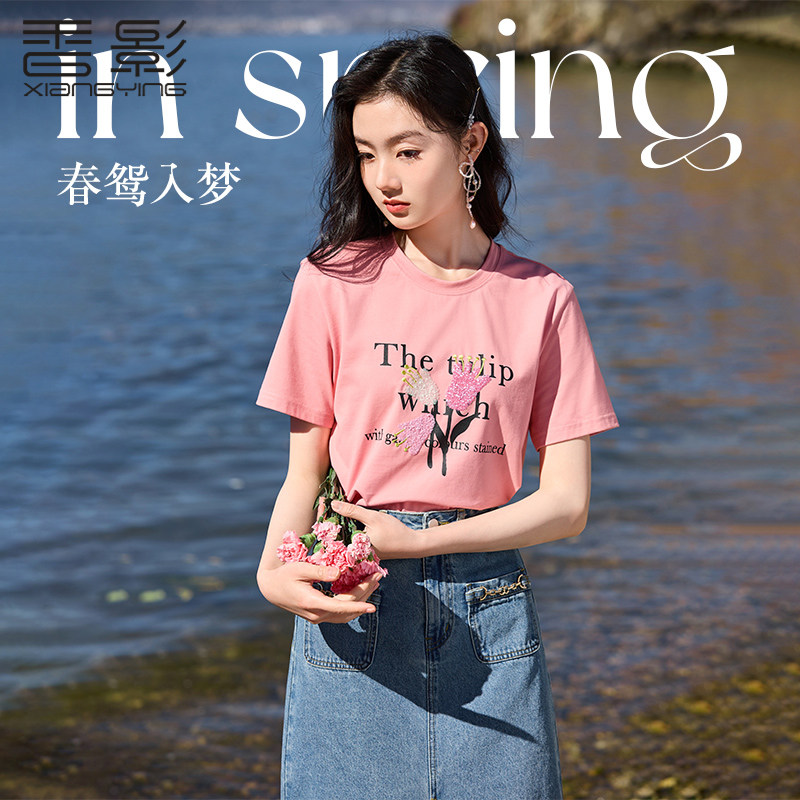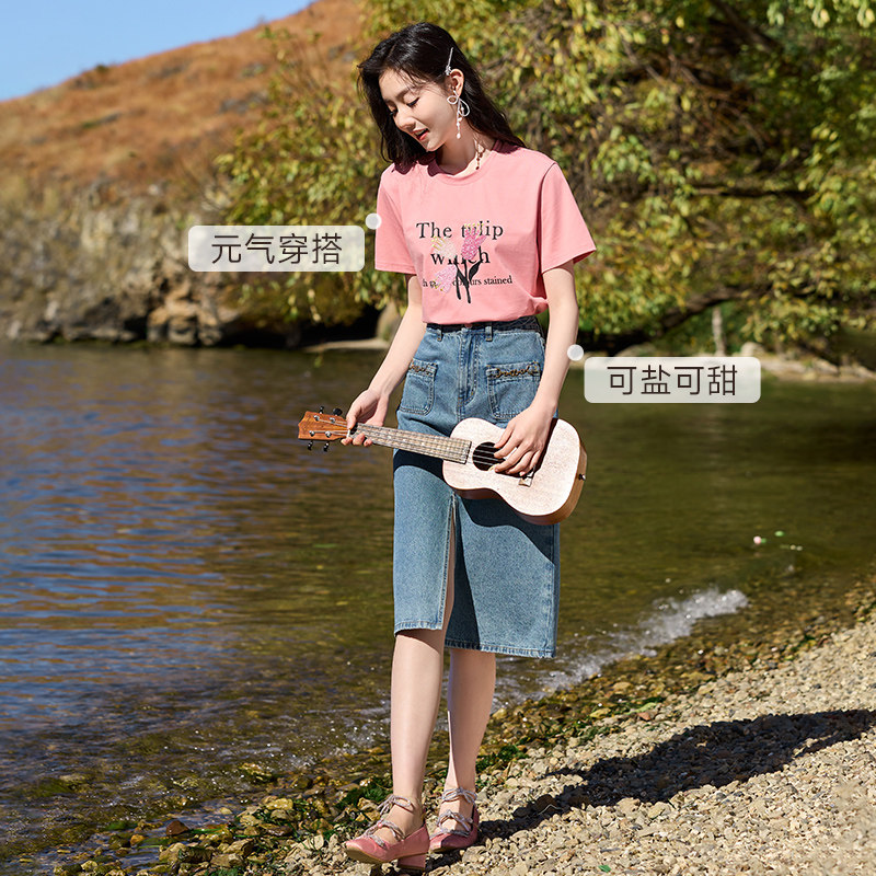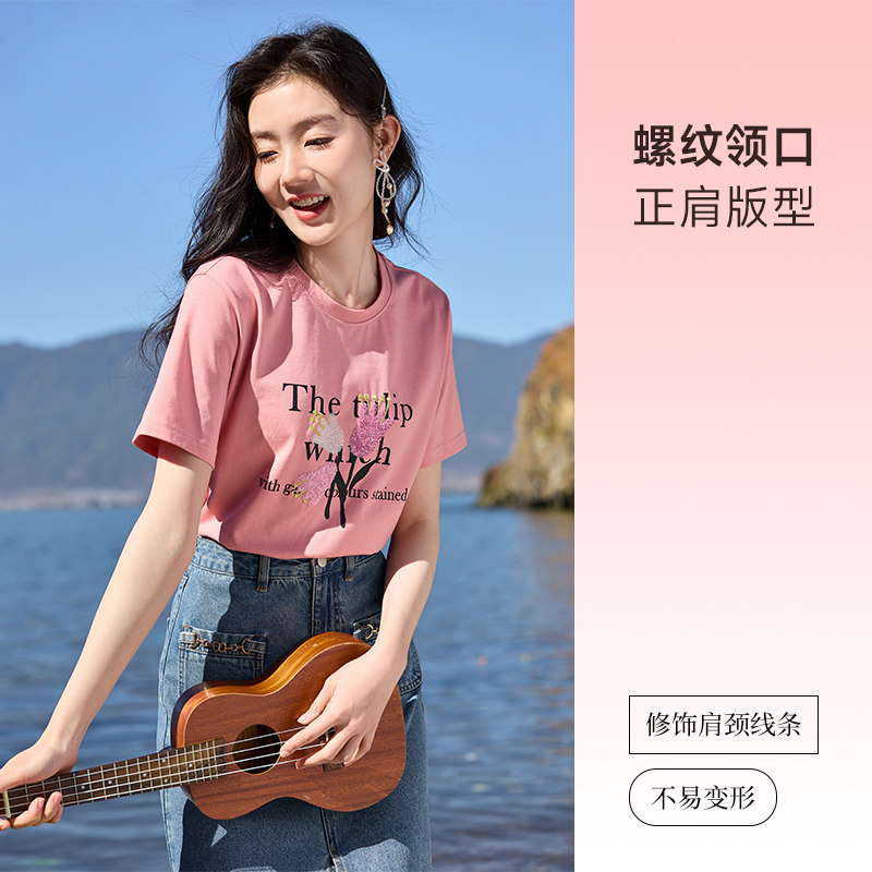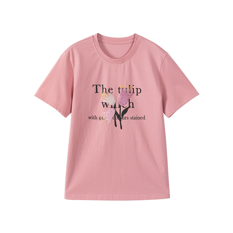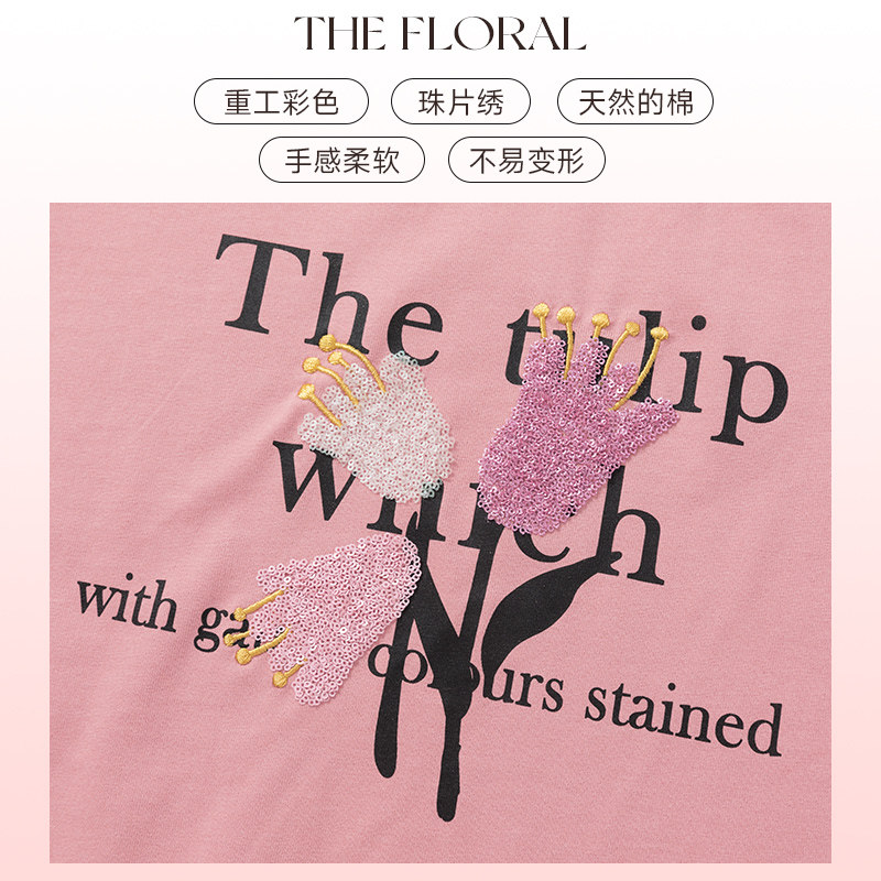 Осенняя розовая дизайнерская футболка с круглым воротником, оверсайз, с рукавом, тренд сезона