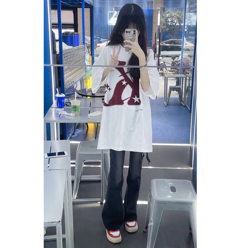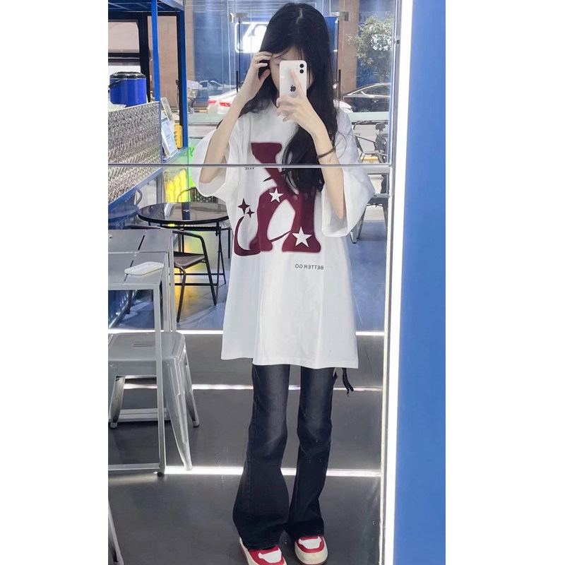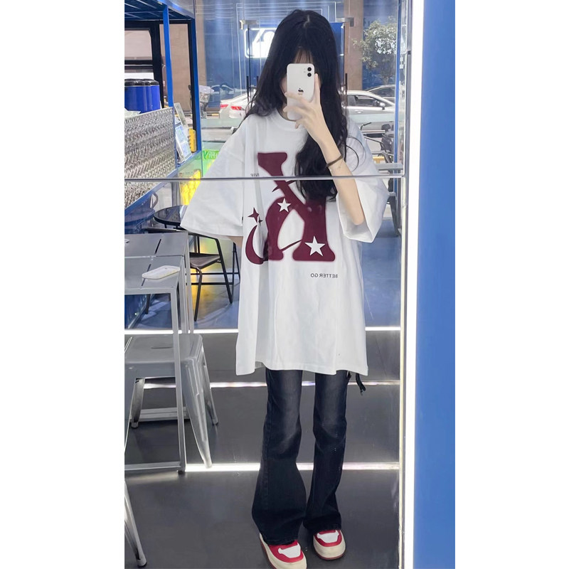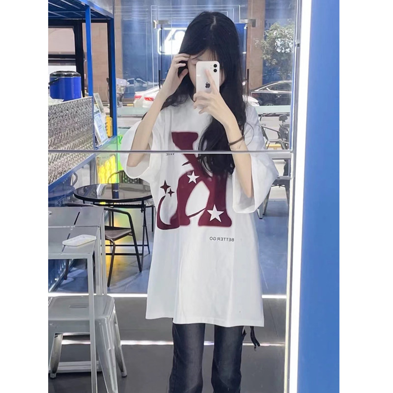 Ретро летняя небольшая дизайнерская футболка с коротким рукавом, в американском стиле, короткий рукав, тренд сезона, оверсайз