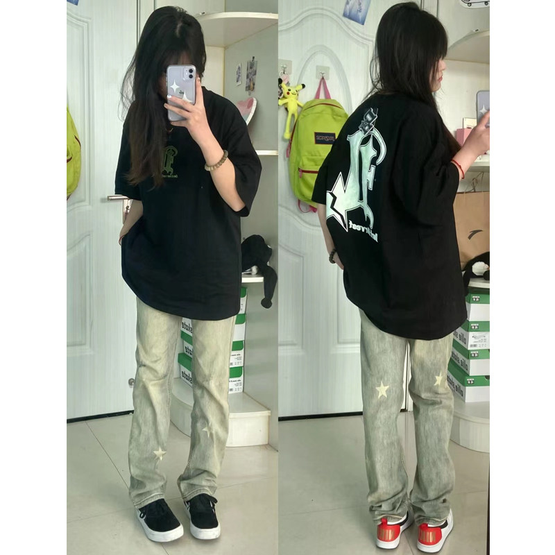 Летняя небольшая дизайнерская футболка с коротким рукавом, этнический стиль, в американском стиле, тренд сезона, оверсайз