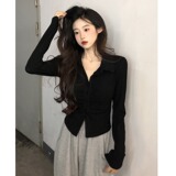 Футболка, дизайнерский корсет, осенняя, большой размер, по фигуре, тренд сезона