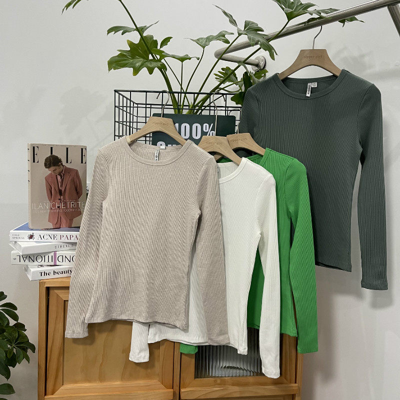 Приталенный трикотажный лонгслив с круглым воротником, комплект