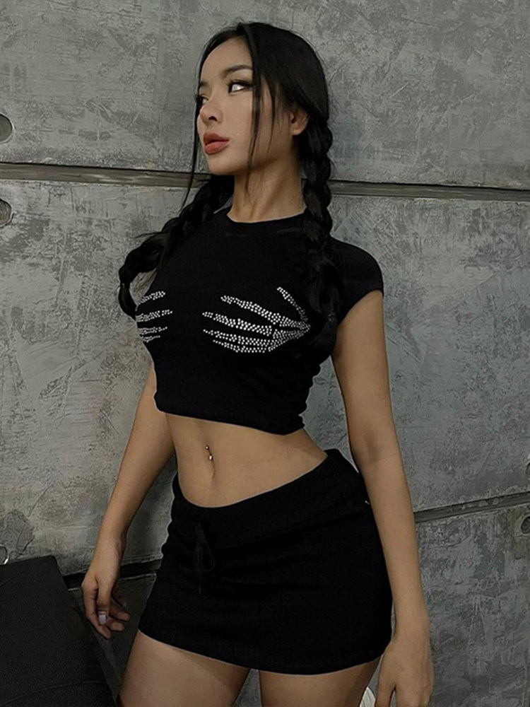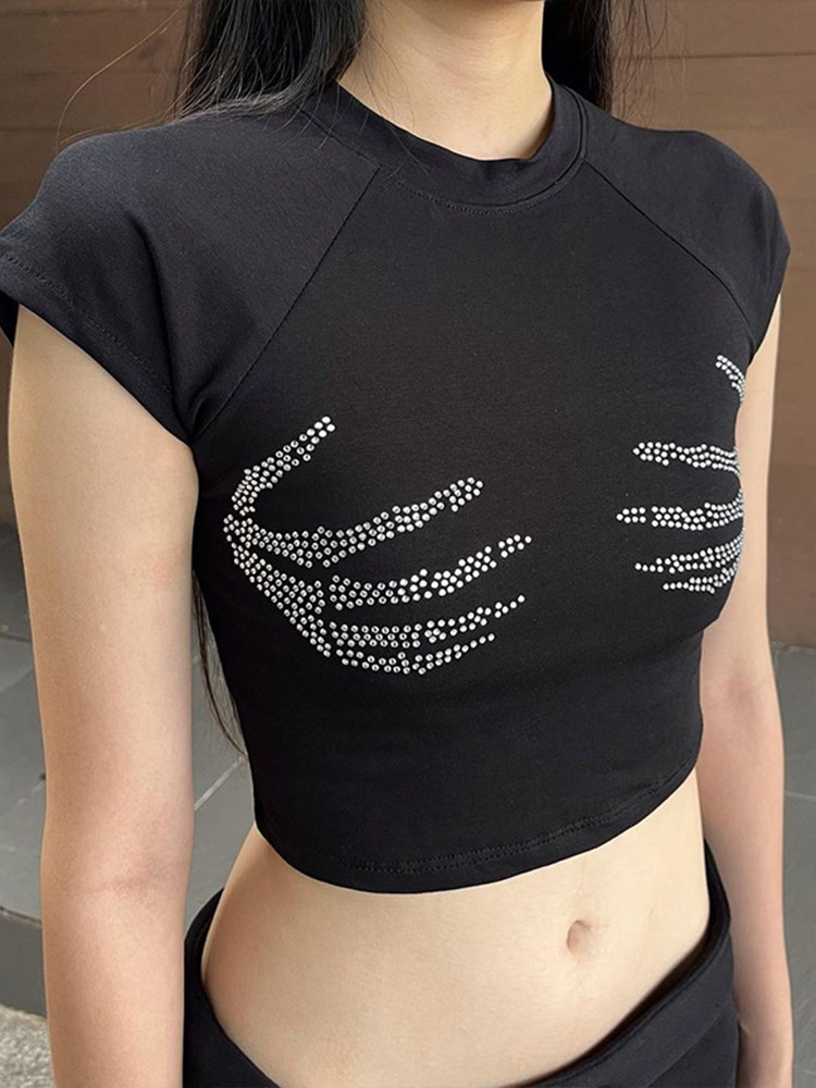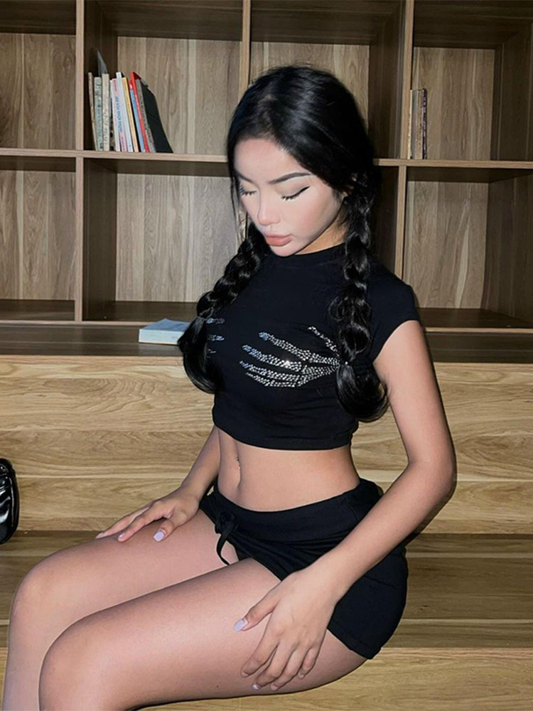 GirlsAt18 Черная футболка с коротким рукавом для отдыха, в американском стиле