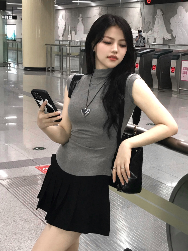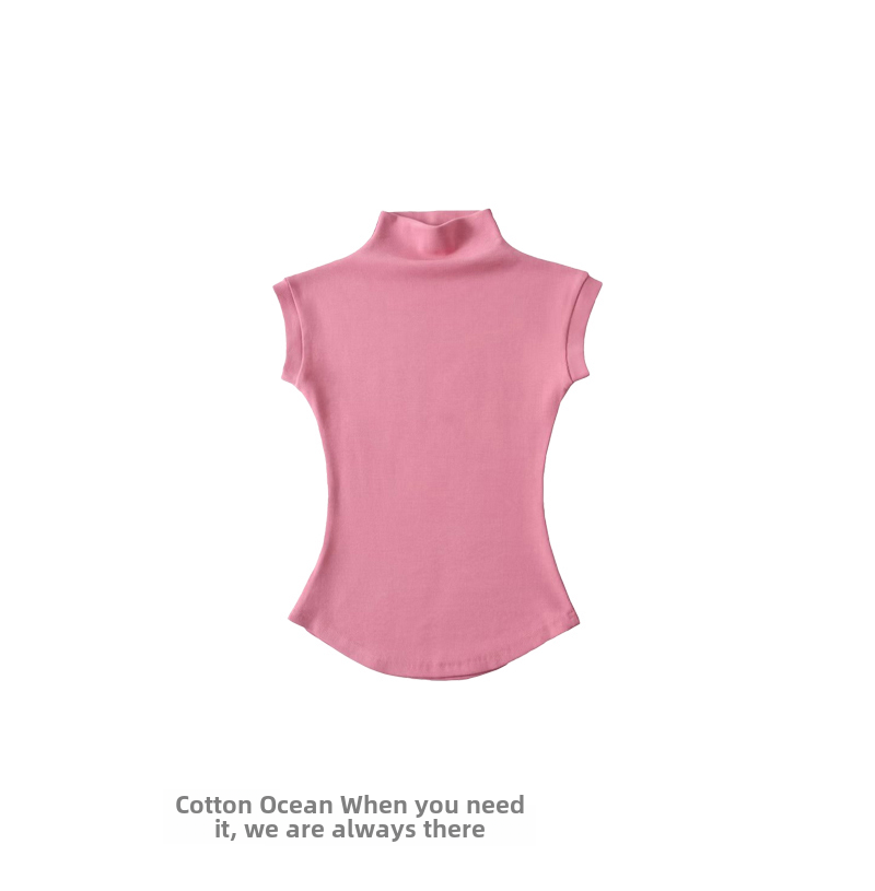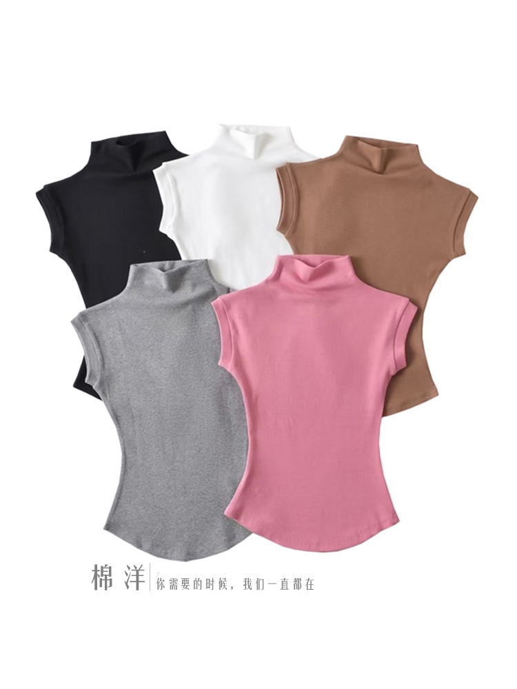 Цветная эластичная майка топ, сексуальная футболка, США, короткий рукав, высокий воротник