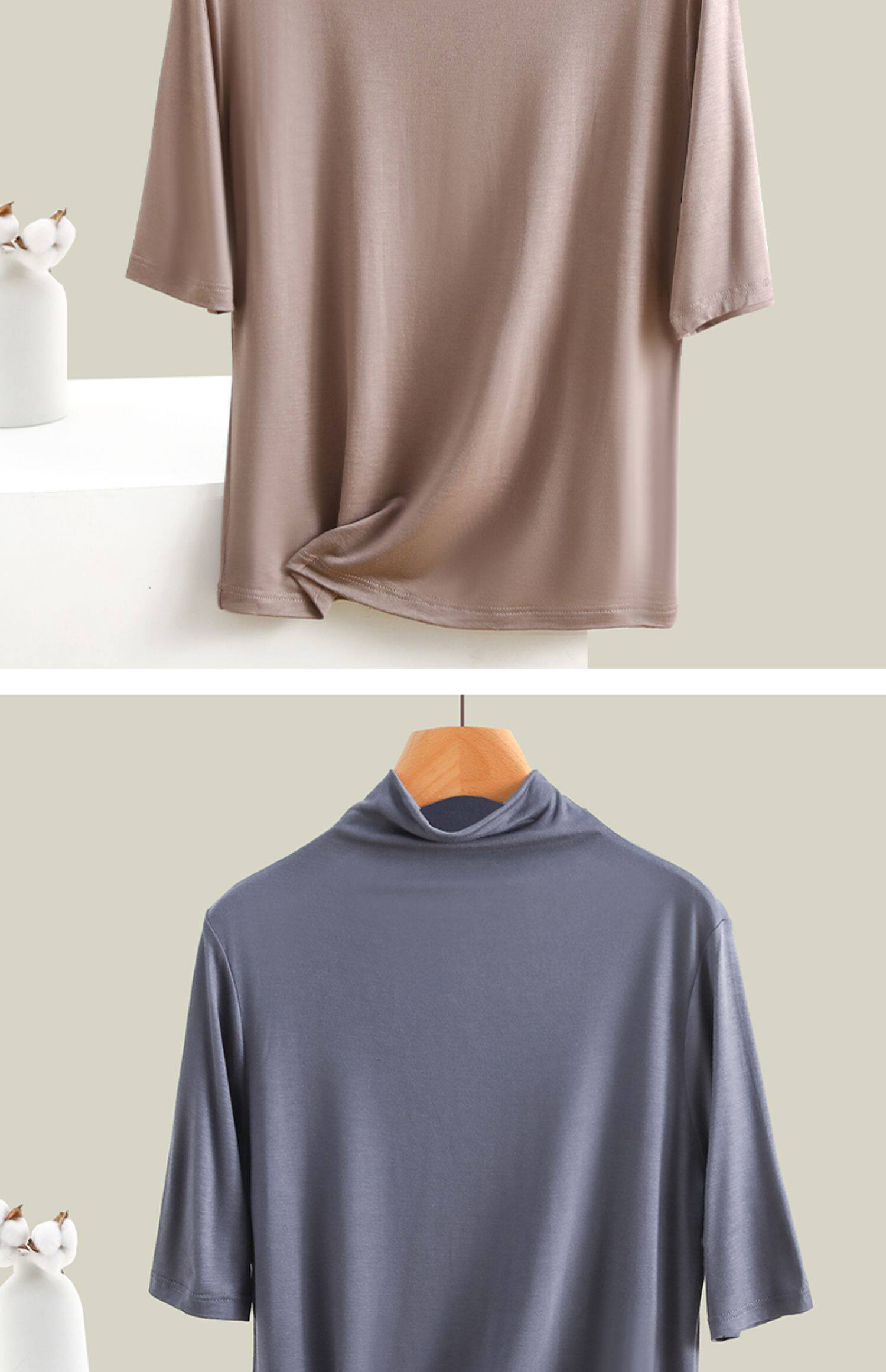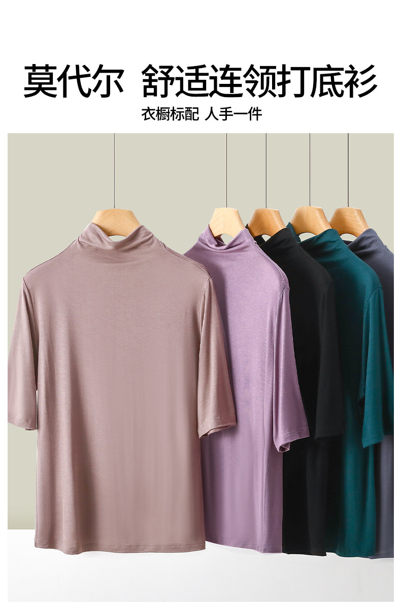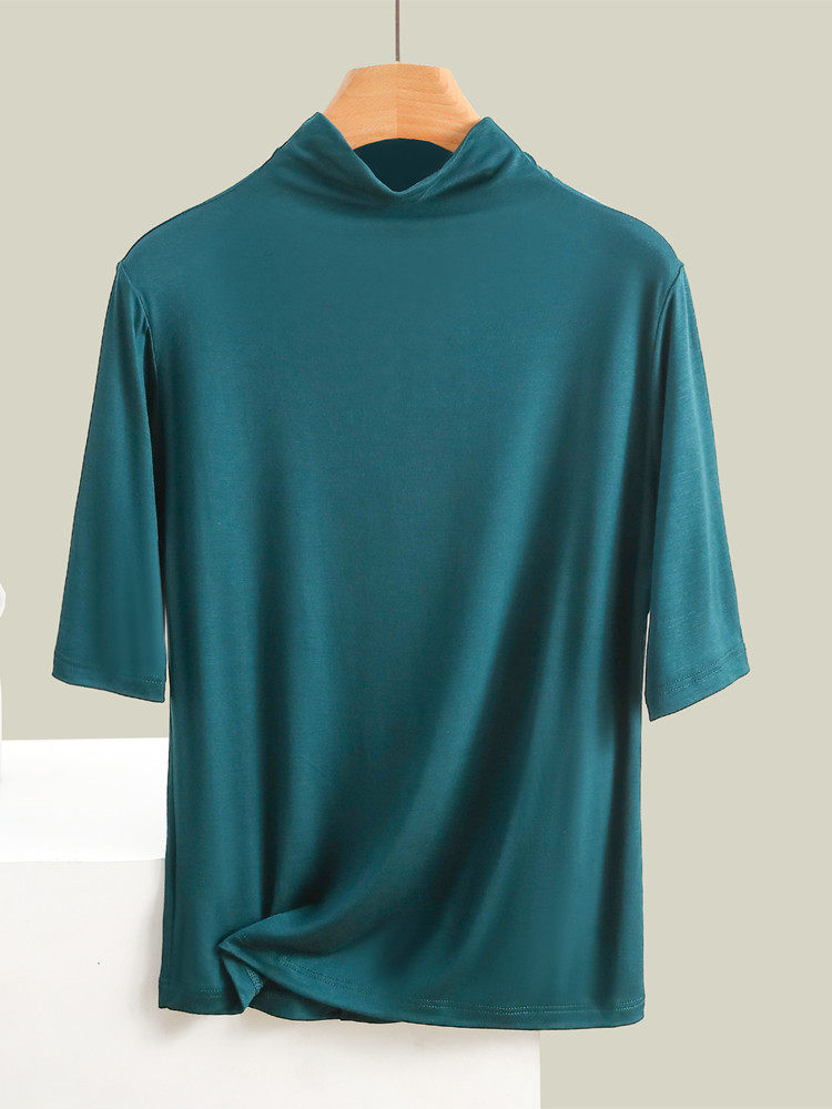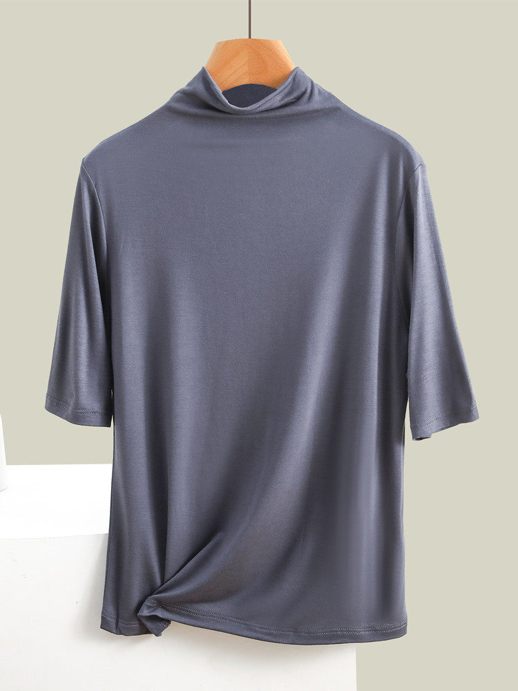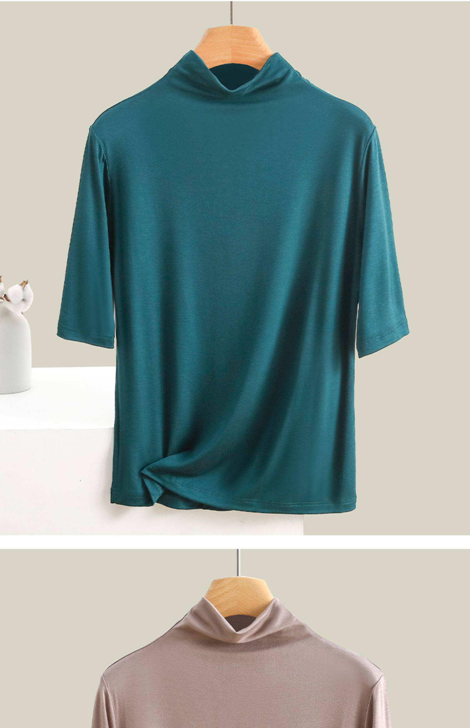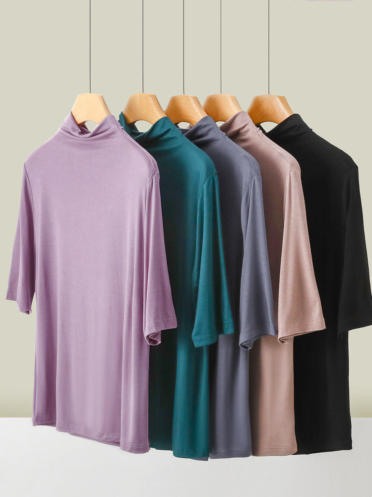 Тонкая цветная базовая приятная телу футболка, высокий воротник, облегающий крой