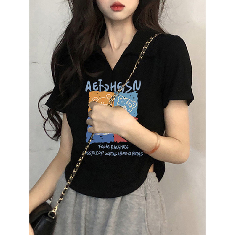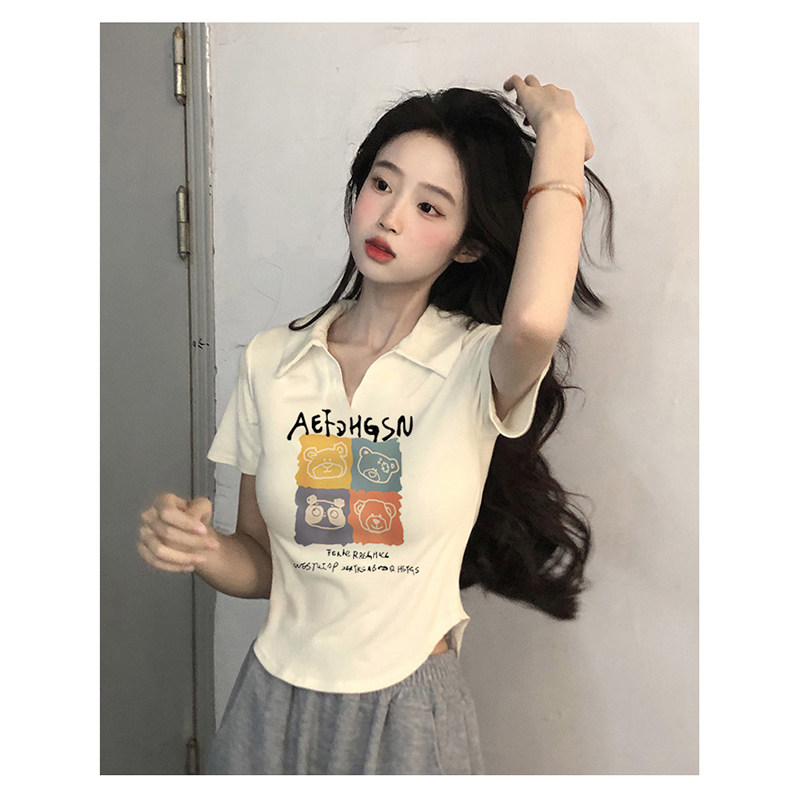 Хлопковая летняя футболка с коротким рукавом, приталенная короткая футболка polo, V-образный вырез, по фигуре