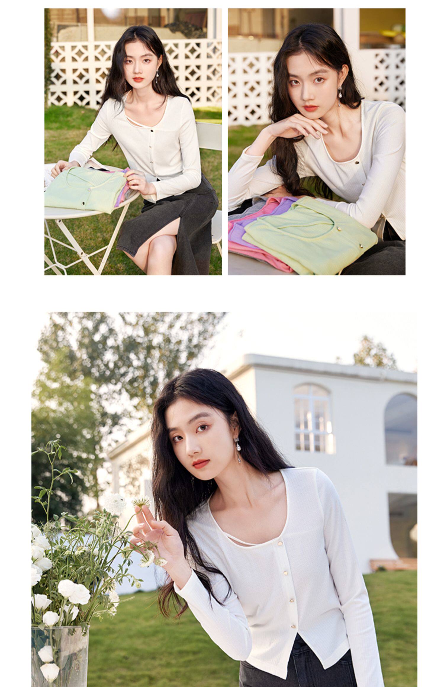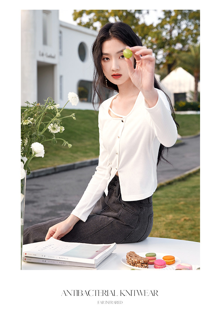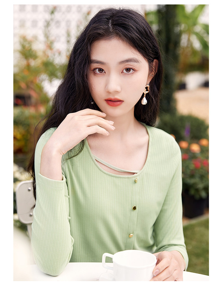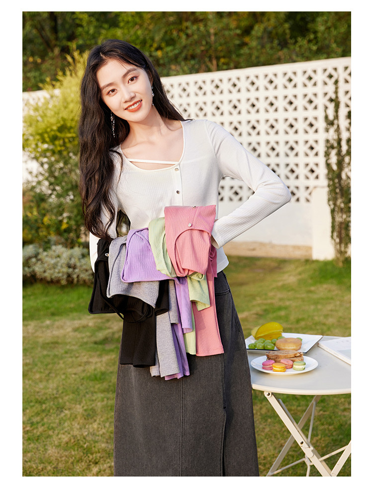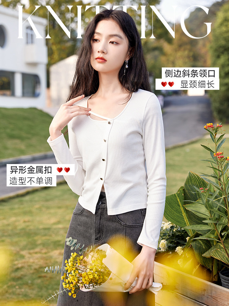 香影 Весенний тонкий трикотажный свитер с круглым воротником, дизайнерский лонгслив, футболка, 2023