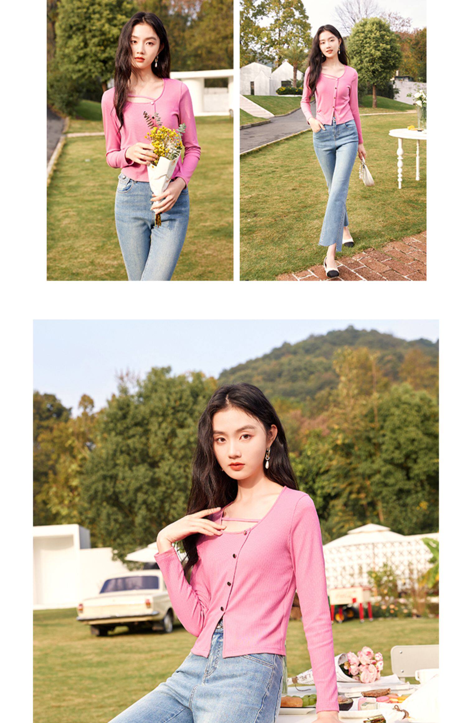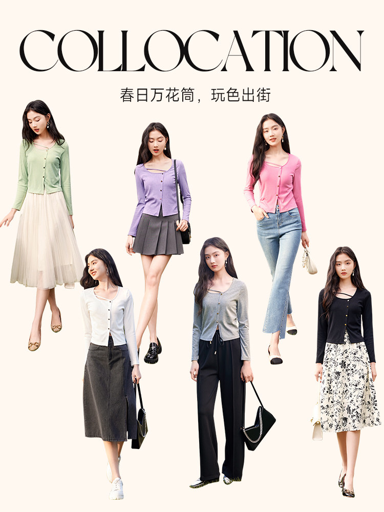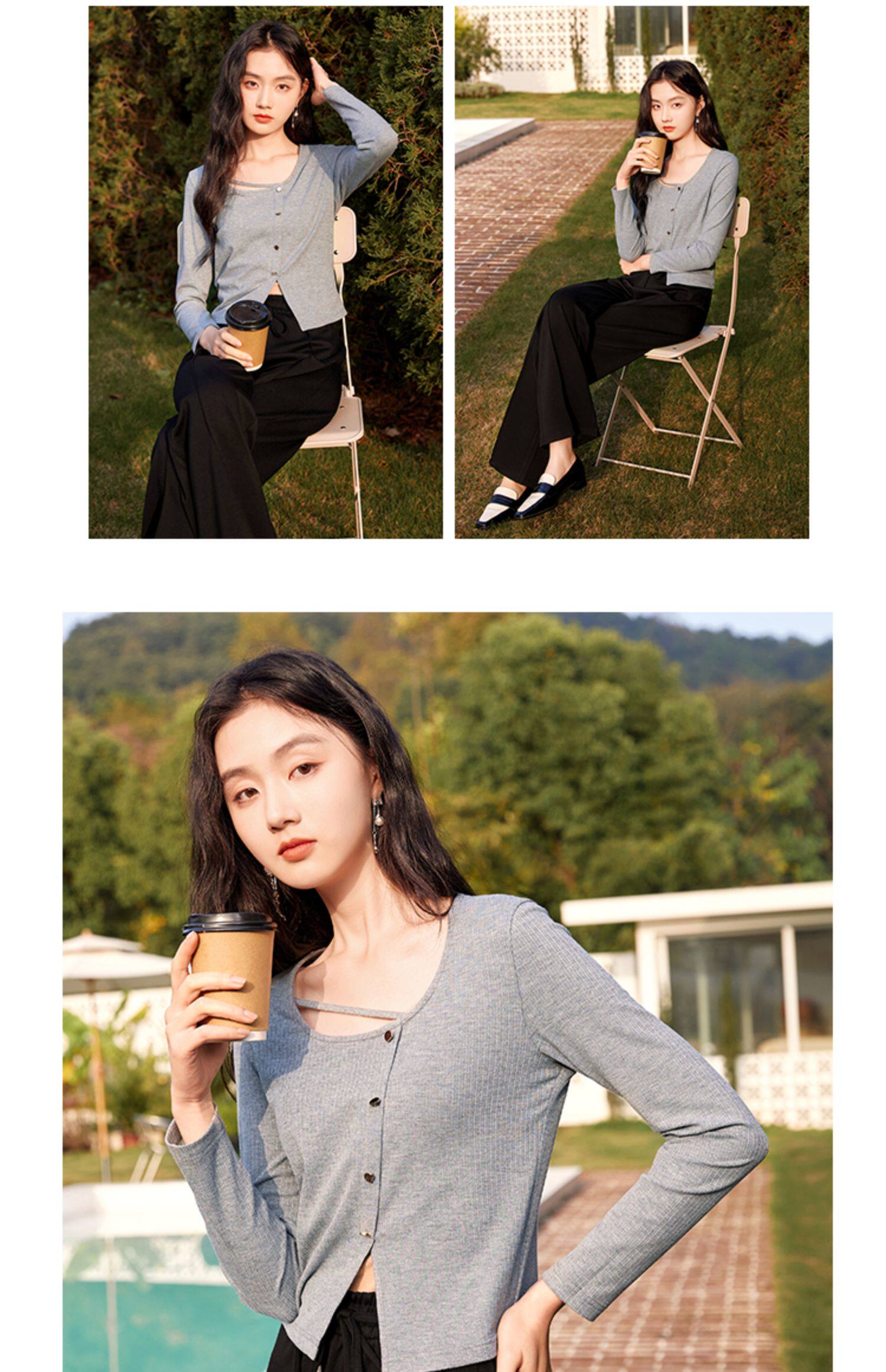 香影 Весенний тонкий трикотажный свитер с круглым воротником, дизайнерский лонгслив, футболка, 2023