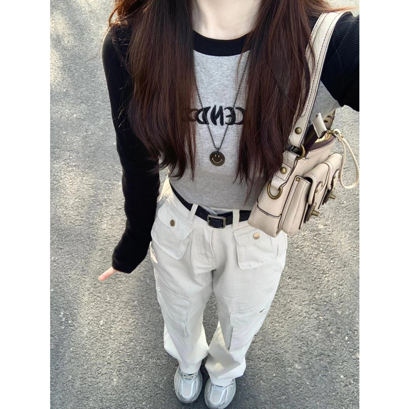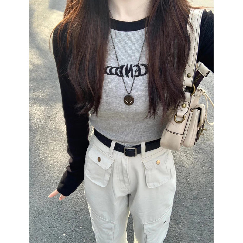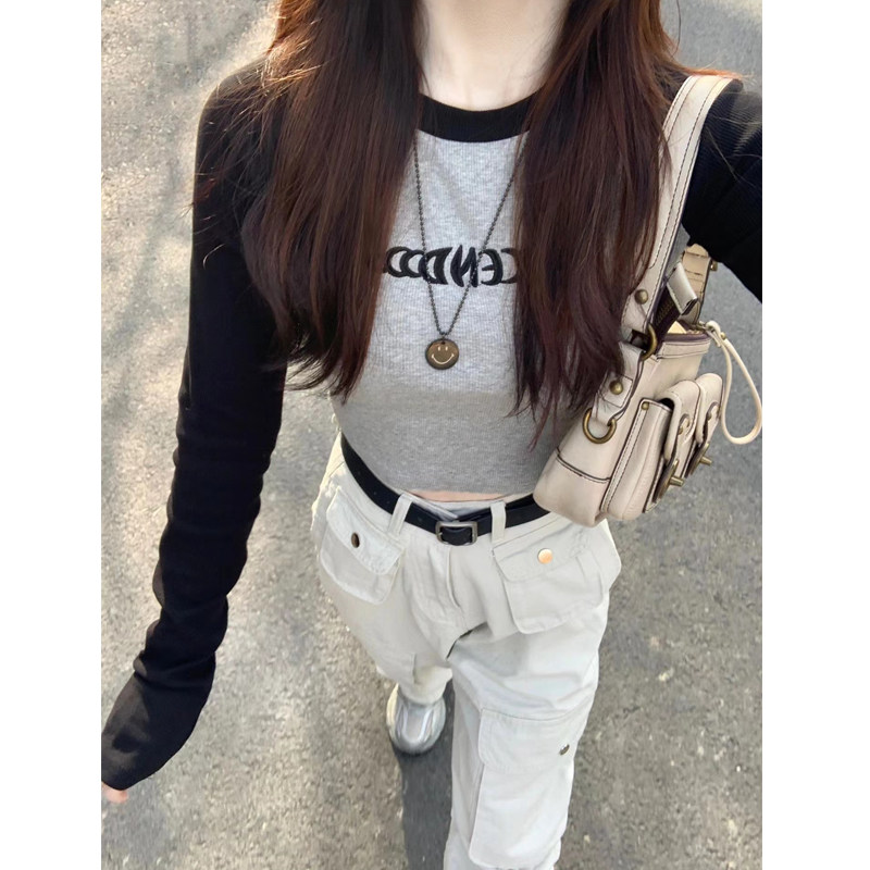 Ретро осенний базовый приятный телу сексуальный короткий лонгслив, в американском стиле