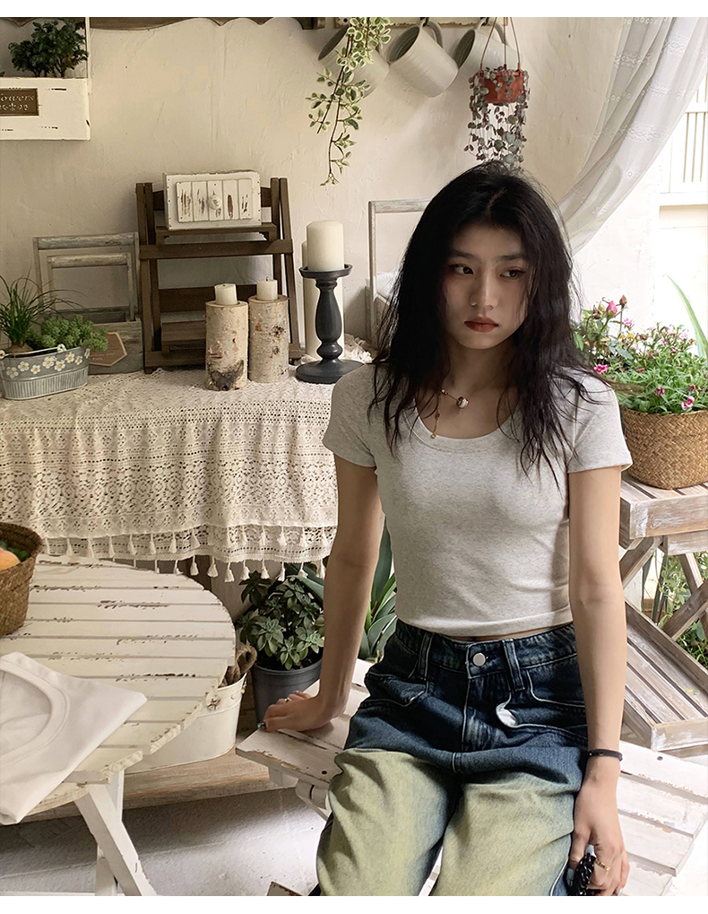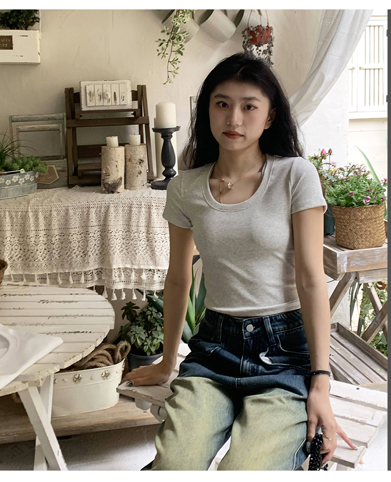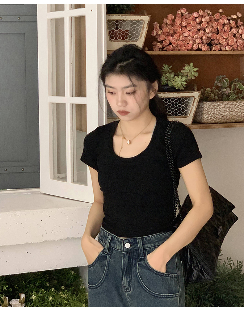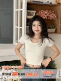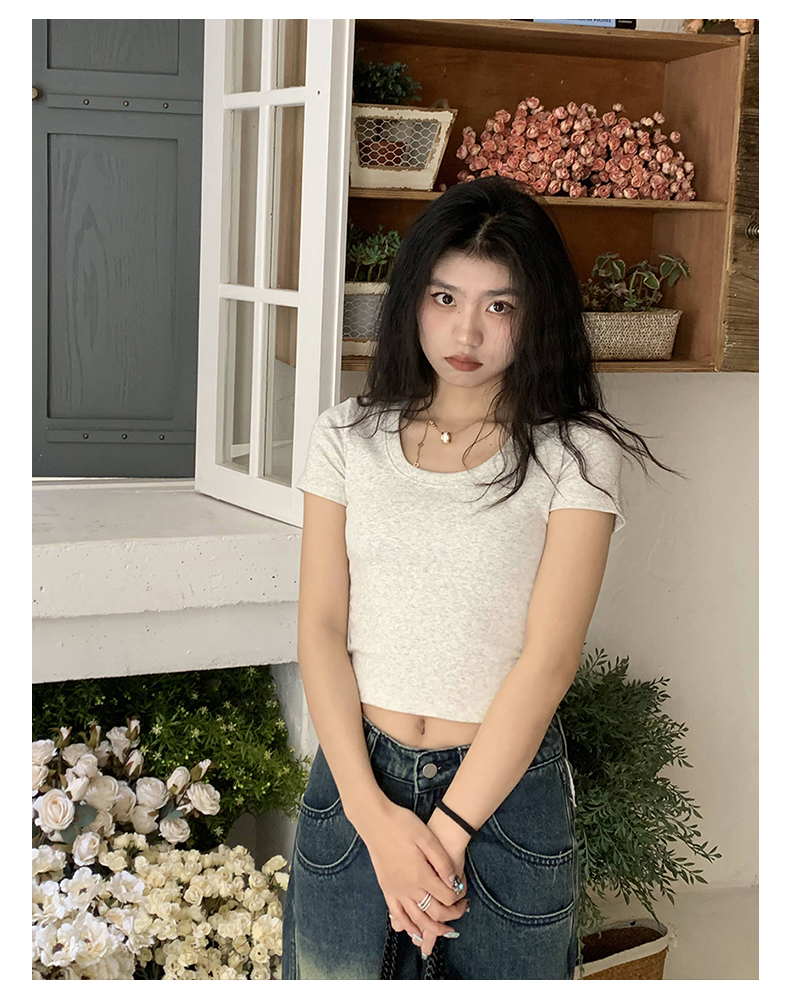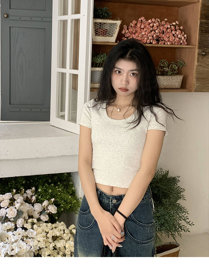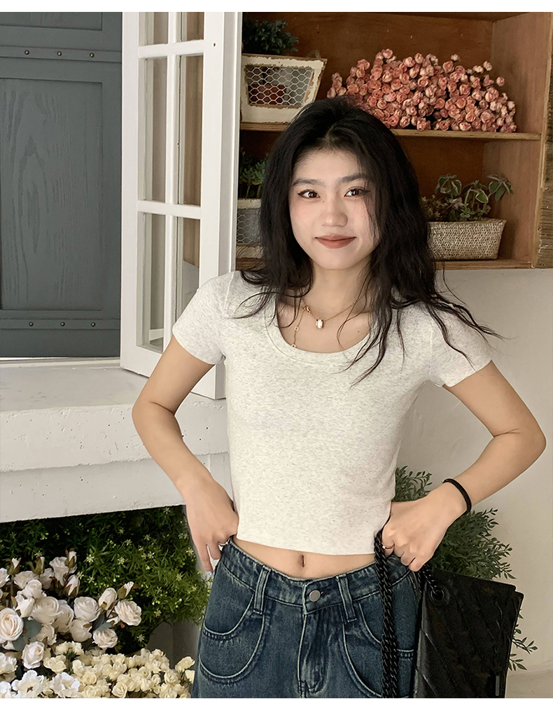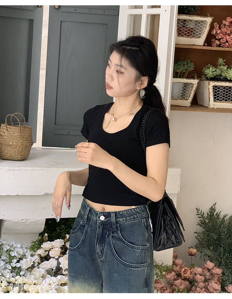 Короткая летняя футболка, короткий рукав, облегающий крой, высокая талия