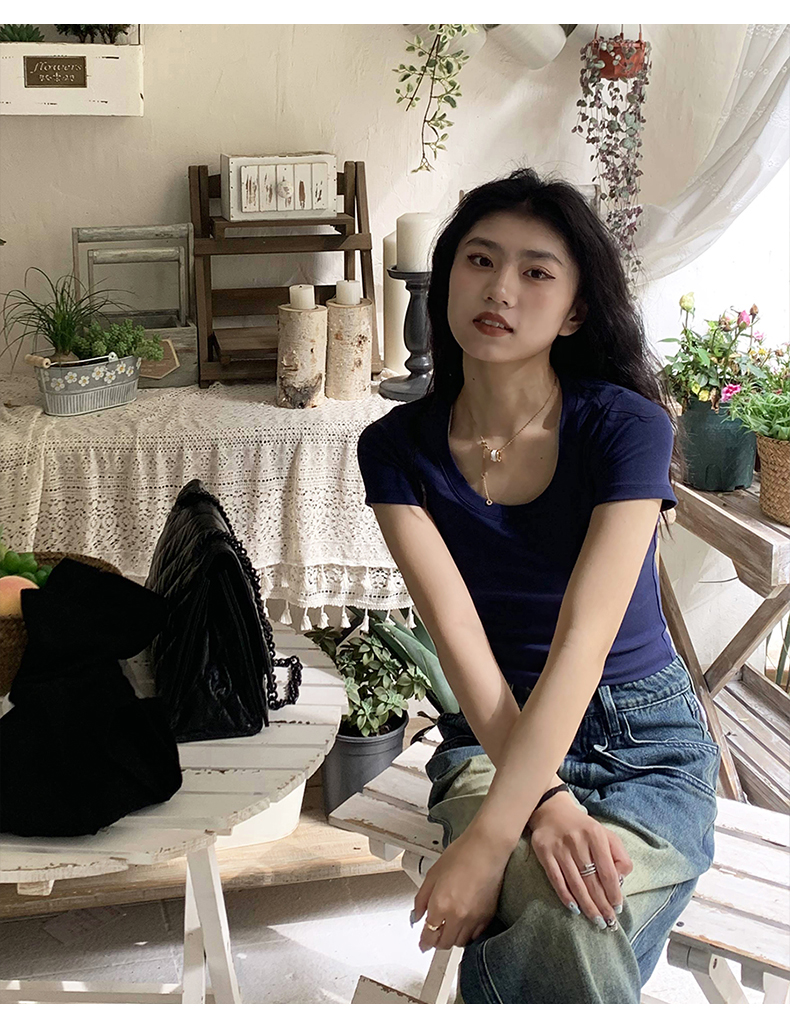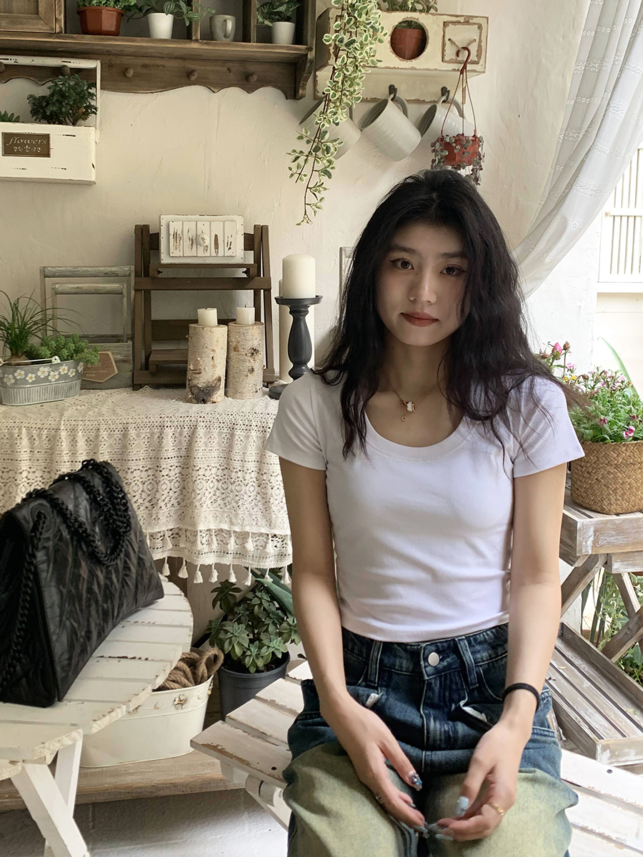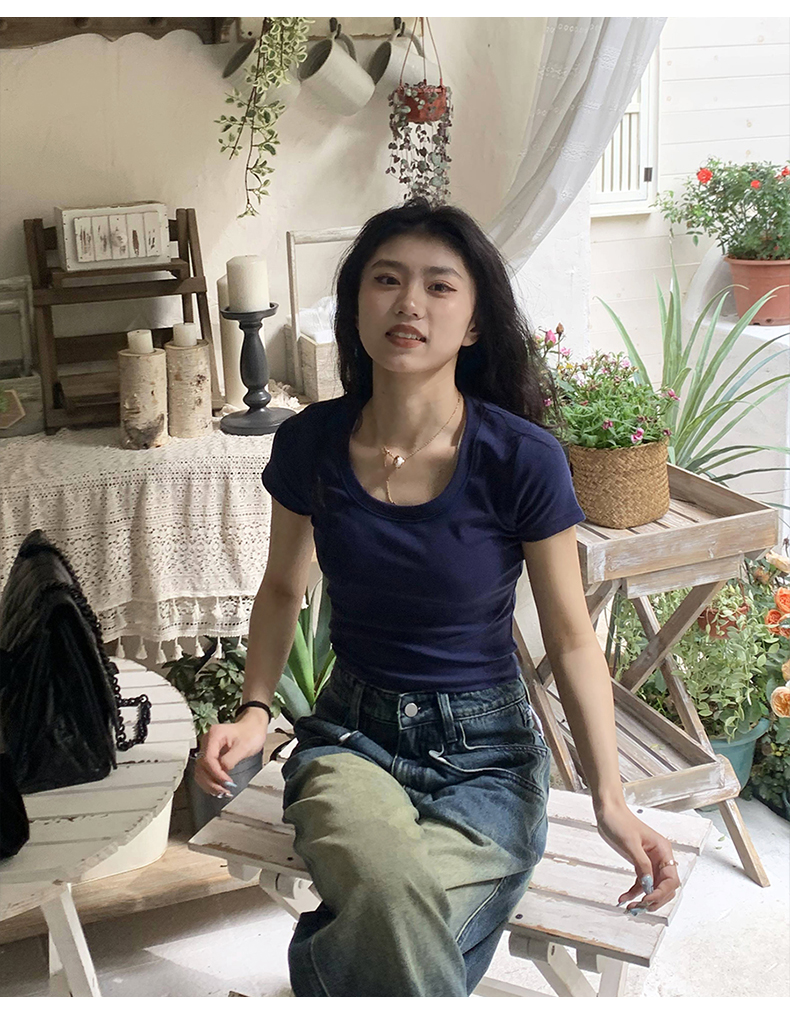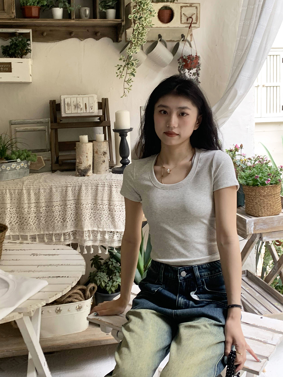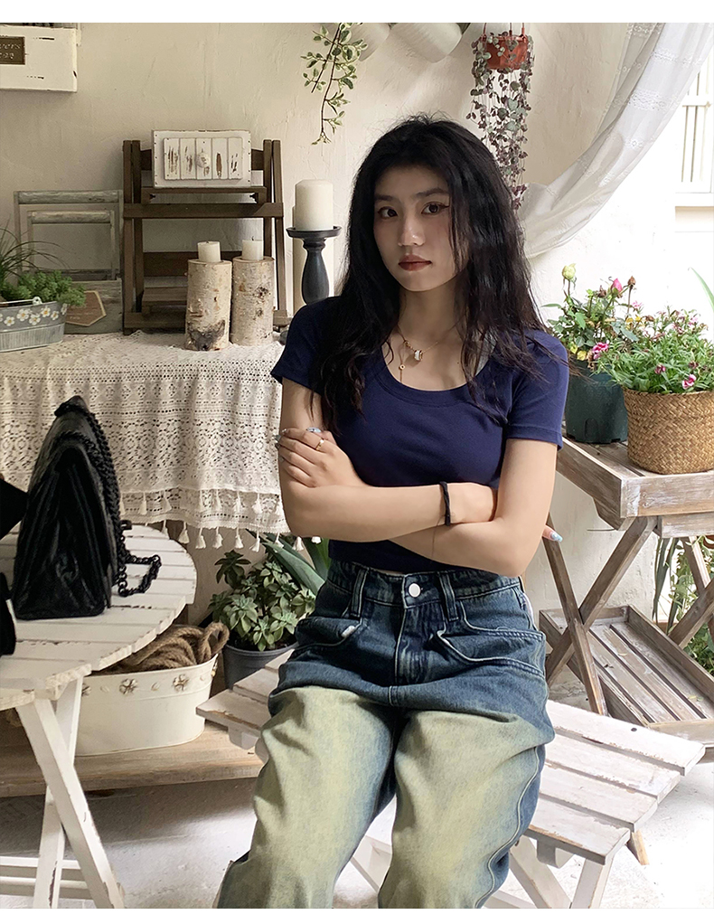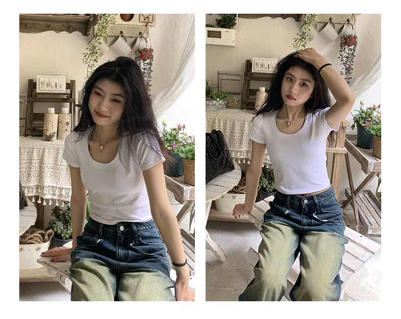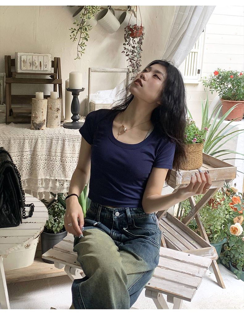 Короткая летняя футболка, короткий рукав, облегающий крой, высокая талия